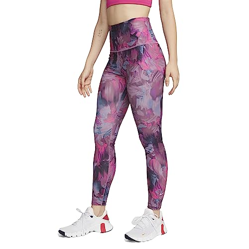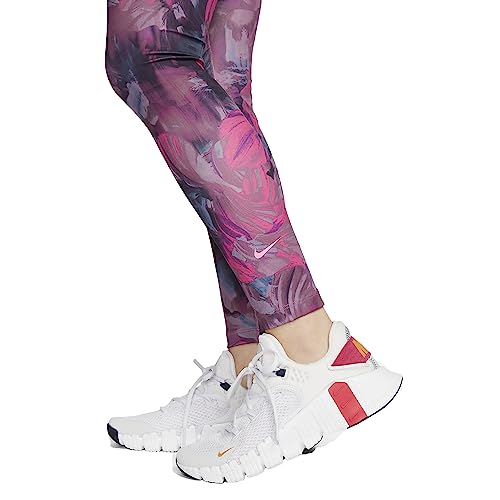 Details: Above all else, you need flexibility in your routine and in what you wear to train. These lightweight leggings are the second skin you'll want to live in. Made with silky-soft fabric that you can't see through, they keep you confidently covered for any workout—and the rest of your day. Work It, Feel Confident Non-sheer fabric passes the squat test to keep you covered. The sides are seamless and the waistband is contoured with a "V" shape on the back to give you a smooth silhouette. Work Out, Stay Dry Stretchy fabric with Nike Dri-FIT technology moves sweat away from your skin for quicker evaporation, helping you stay dry and comfortable. Work Hard, Keep Shining An allover floral print in aura-inspired hues radiates confidence and positivity.