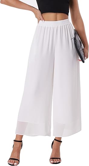 - Summer boho women's chiffon wide leg pants dressy beach palazzo pants elastic waist trouser double dual-Layered wide-Leg cover up trousers offer flowy breezy elegance and comfort.