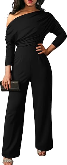 - Features: Elegant long sleeved off shoulder design, you can choose one shoulder or off shoulder according to your preferences. There is a zipper design at the back for easy on and off, and a high waist can display slender legs, while a wide leg design.