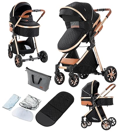 2 in 1 Baby Stroller with Bassinet, Convertible Pram, Reversible Standard Baby Stroller, Portable Baby Buggy, Infant Carriage, Foldable High Landscape Pushchair for Toddler Newborn (2USV9-BG)