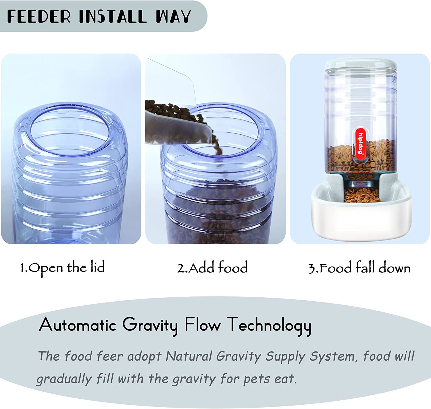 • 4.Easy to clean: barrel and chassis of the automatic feeder can be split, you can rinse directly with water, it is recommended to wash once a week