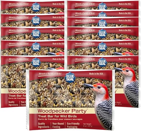Blue Seal Woodpecker Suet Treat Bars for Wild Birds - No Mess Suet Feed, Food for Woodpeckers, Cardinals, Sparrows & More - 8 oz Bird Seed Cakes (Pack of 12)