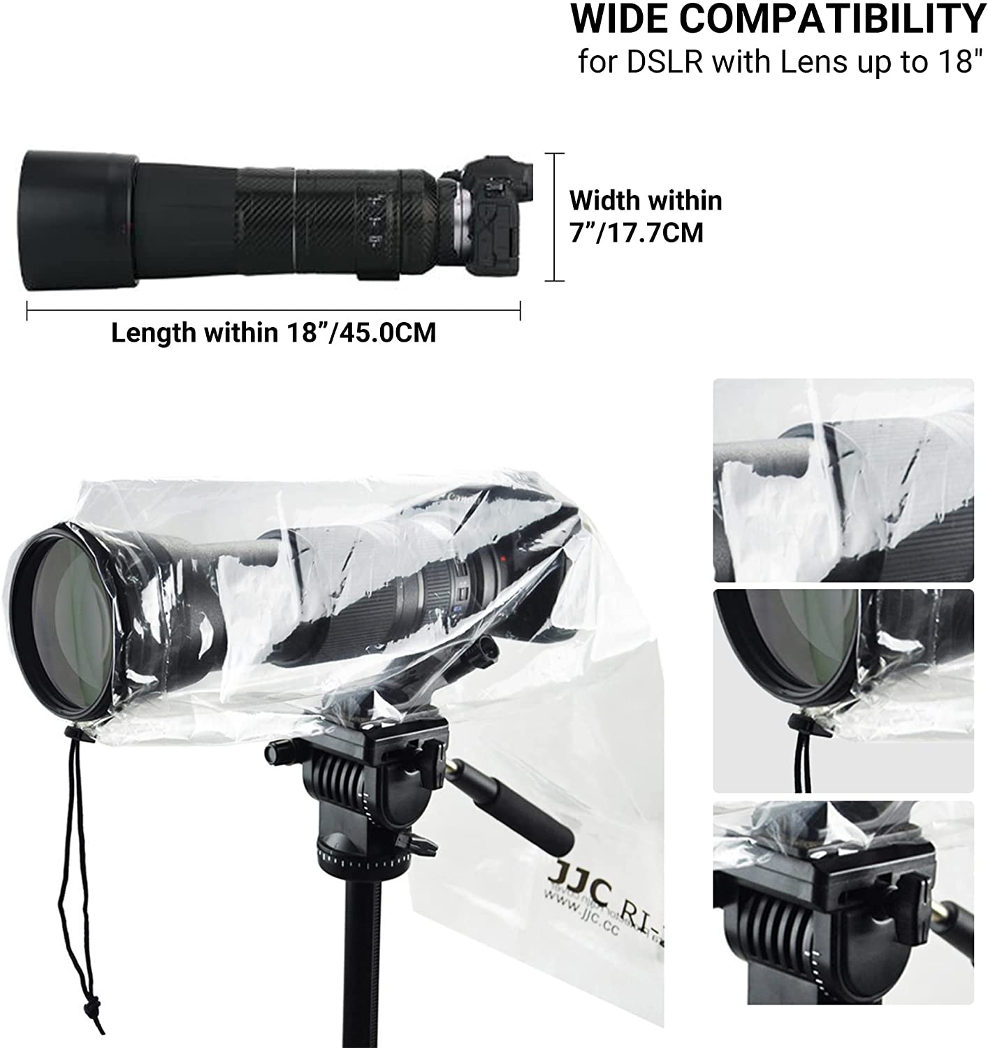 DSLR Camera Rain Cover JJC Rain Coat Sleeve Protector for Canon Nikon Fujifilm Sony Olympus Panasonic Pentax Sigma with a Lens up to 18" PE Material Clear See-Through(2 Pack)