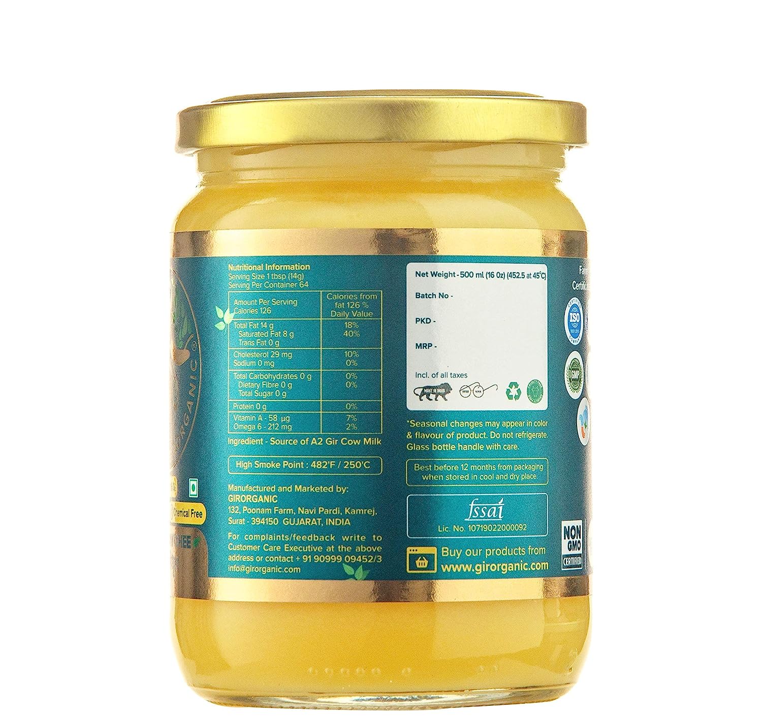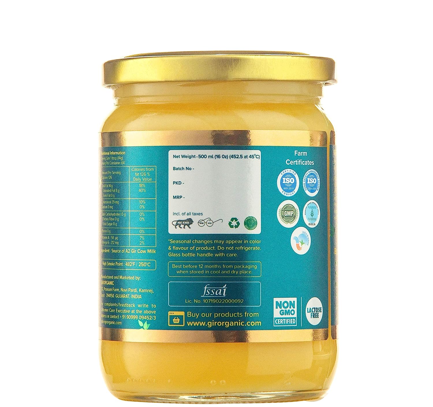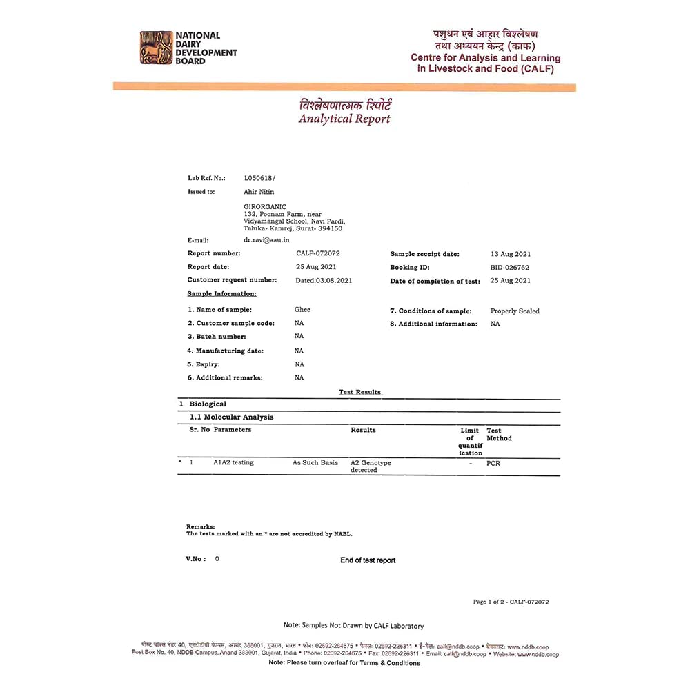 • Healthy & Premium Desi Ghee: Our Healthy Desi Ghee is Gluten Free, USDA / CCOF / Kosher/GMP Certified. Regular consumption of our high-quality A2 ghee helps reduce cholesterol, improves the heart's functioning and reduces joint pain. It keeps the body healthy and increases its potency.