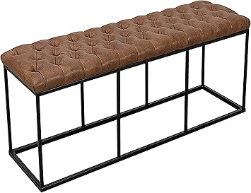 HomePop Faux Leather Button Tufted Decorative Bench with Metal Base, Brown