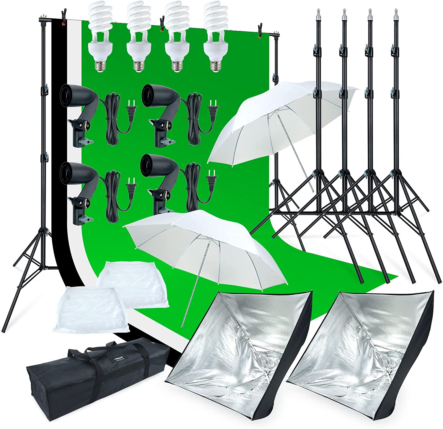 LINCO Lincostore Photo Video Studio Light Kit AM169 - Including 3 Color Backdrops (Black/White/Green) Background Screen