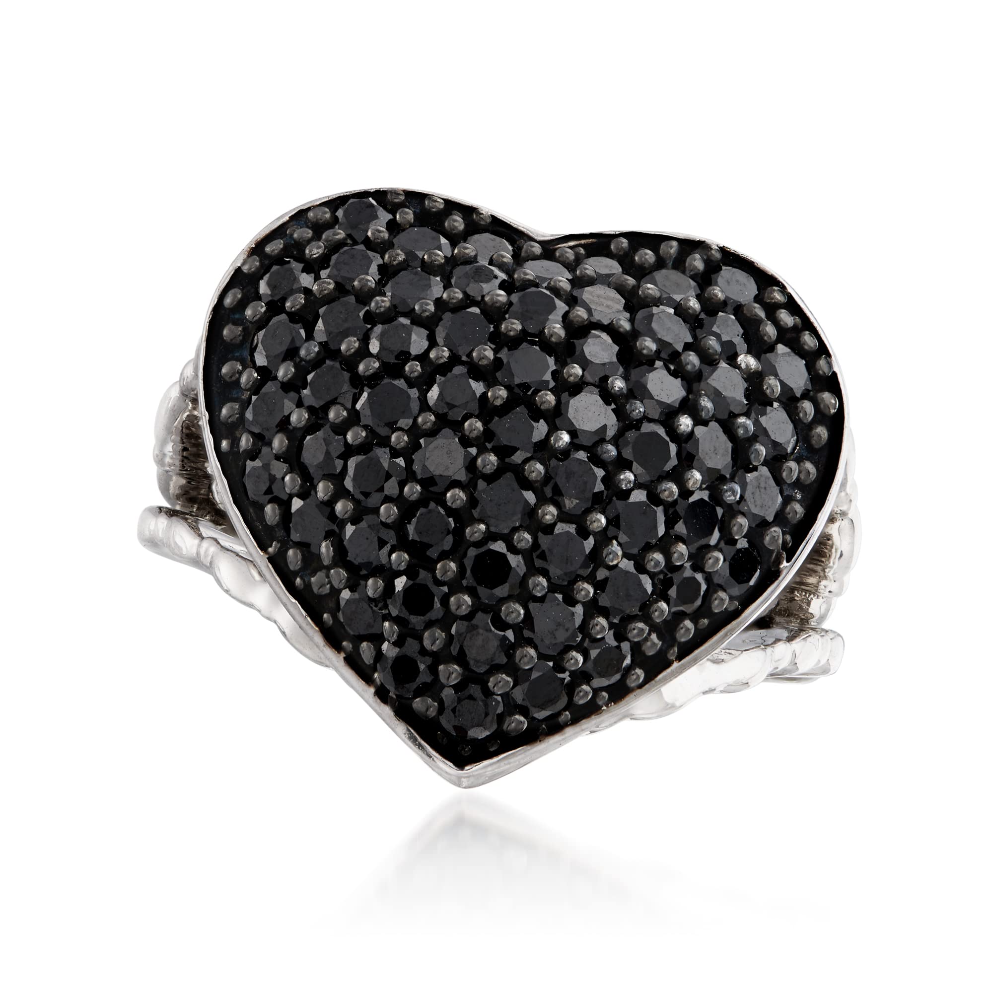 Details: With a commitment to quality and affordability, Ross-Simons presents timeless jewelry for the modern woman. A sleek arrangement of 2.60 ct. t.w. black spinels pave the surface of this heart ring. Patterned texturing details the split-shank, sterling silver band. Black spinel heart ring.