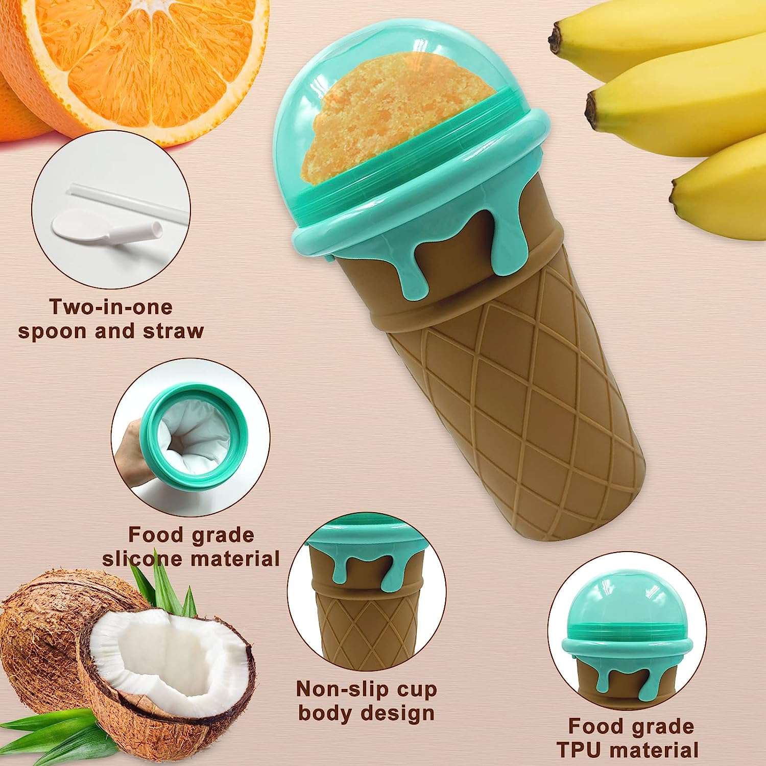 • ✅ sᴀғᴇ ғᴏᴏᴅ ɢʀᴀᴅᴇ ᴍᴀᴛᴇʀɪᴀʟ: Slushie cup makers are made of BPA free and food grade silicone EVA and PP, squeeze cup slushy maker soft and non-deformable, slushy cups are washable and reusable.This frozen magic slushy maker is 100% safe for you and your kids.
