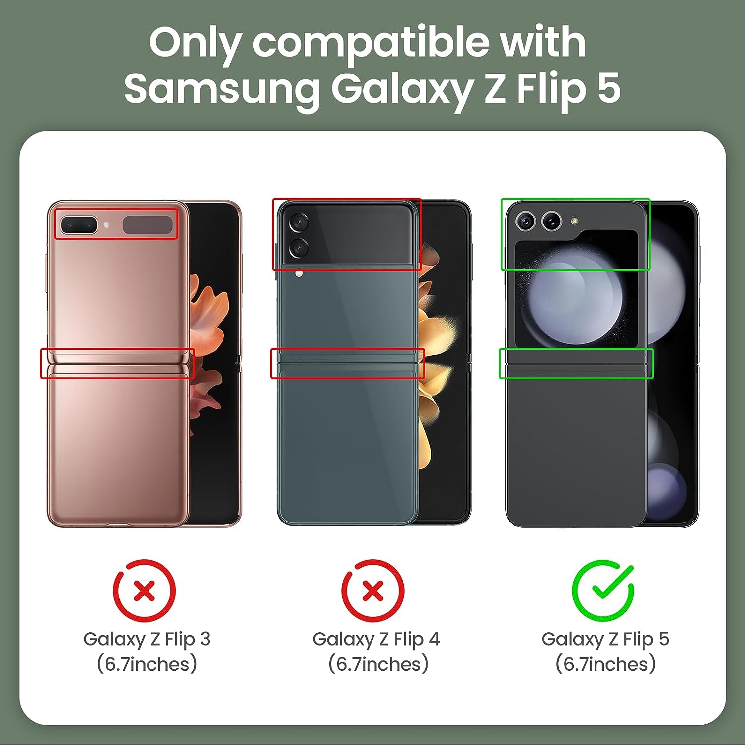 • 【Crystal Clear & Anti-Yellowing:】This Samsung Z Flip 5 case use high-grade TPU and PC materials with an anti-oxidant layer that doesn’t turn yellow over time. Our case is easy to clean, prevents scratching, and doesn't get oily.