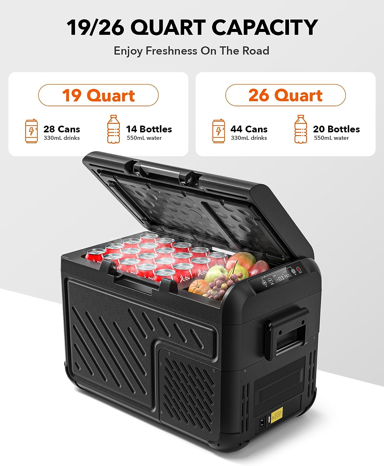 • FAST COOLIING, CUSTOM TEMOERATURE - The newly applied Quick Freeze technology allows the 12V freezer to drop the temperature from 32℃ to 0℃ within 24 minutes, which shortens your waiting time, especially during outdoor activities. It can also be kept cold at the precise temperature you prefer, adjustable in different temperatures between -8°F~68°F (-22°C to 20°C) for chilling or freezing.
