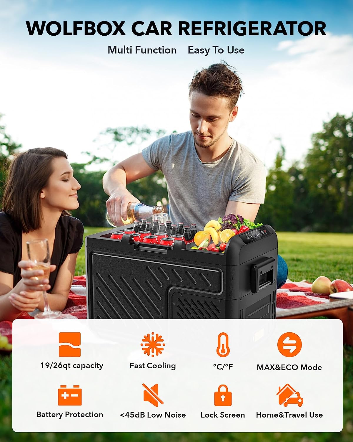 WOLFBOX 12V Portable Refrigerator,19 Quart Car Fridge,RV Car Refrigerator with 12/24V DC 110-240V AC,Electric Cooler for Car, Camping,Travel and Home Use