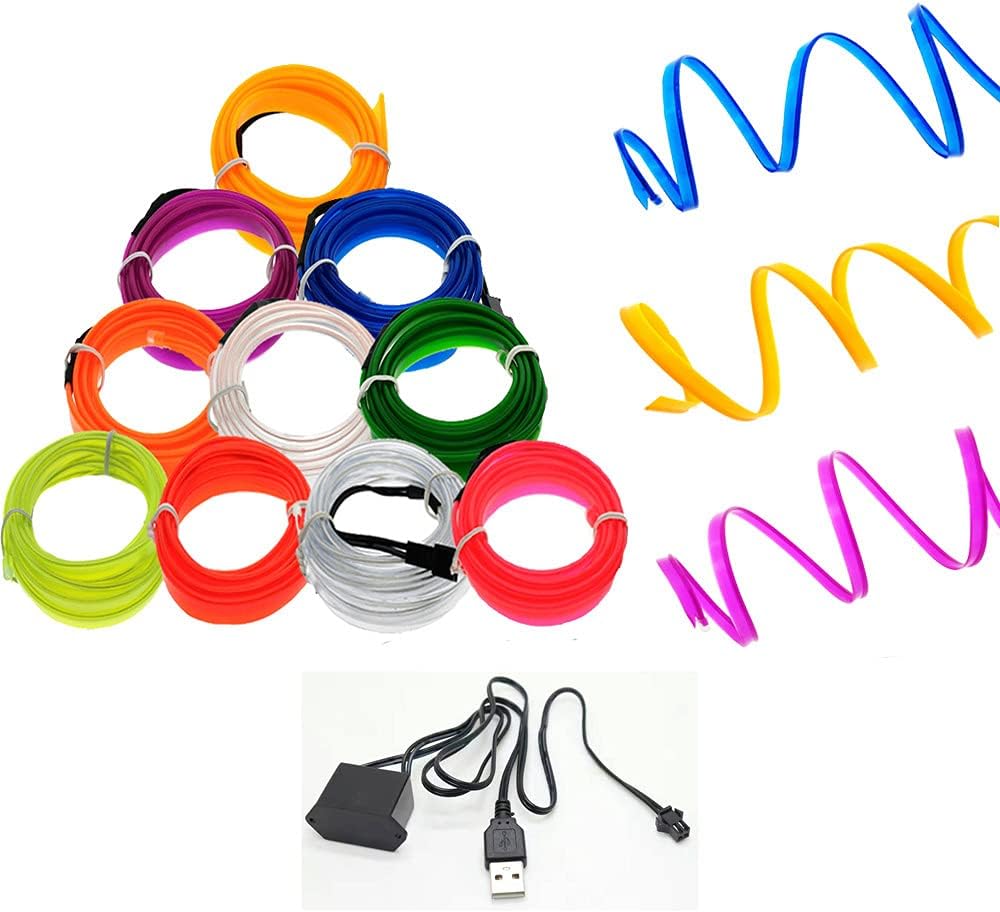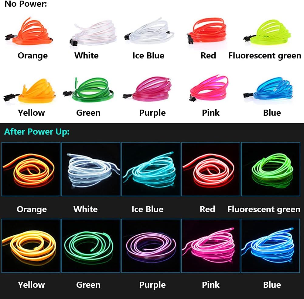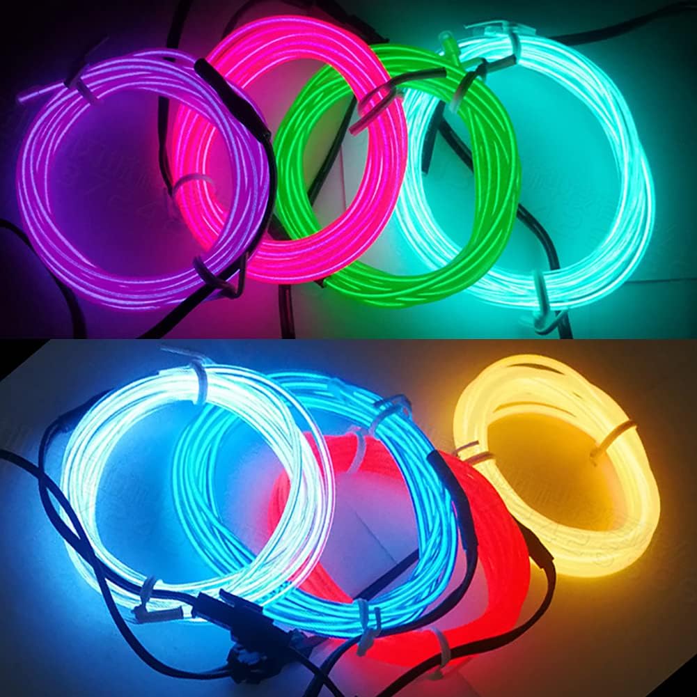 • Flexible EL Wire: Neon rope light is about 5m/16.5ft long; Wire-Diameter: 2.3mm; Sewing Edge: 6mm, Neon Electroluminescent (EL) Wire, flexible and water resistant, easy to install, can be bent into any shape and cut into any length (you need to seal the new end).
