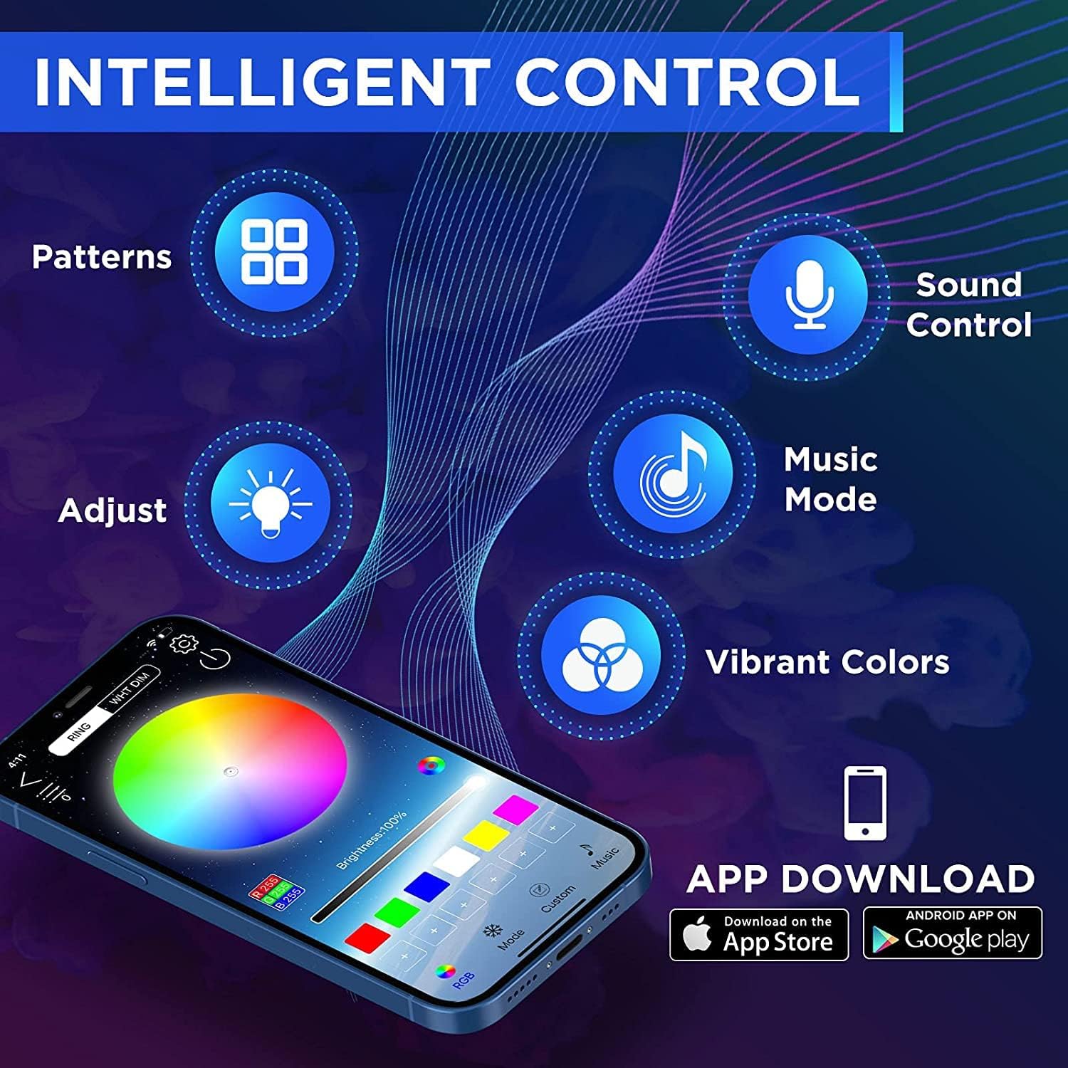• Intelligent Control: App control makes it easy to change the color, brightness, music mode, sound control mode allows it to change pattern following your voice as well as car stereo music rhythm. Over RGB 16 million colors and 4 patterns(constant, flashing, jumping and gradient) for selection.