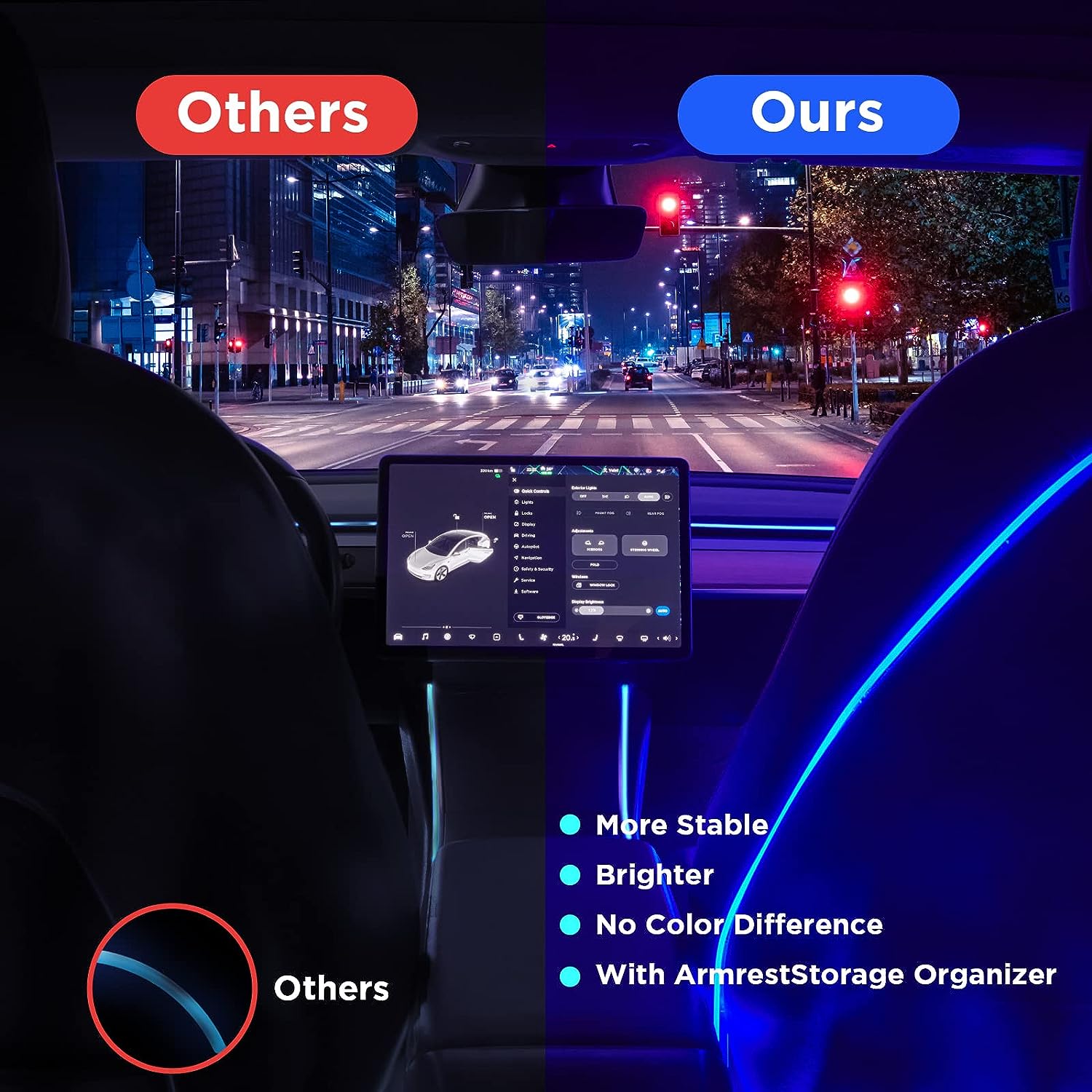 Nestour 2021 2022 2023 Tesla Model 3 Y Interior Car Neon Lights (Center Console+Dashboard+Seat+4 Foot Lights) with Matching Armrest Organizer, Ambient APP-Controlled RGB LED Strip Lights