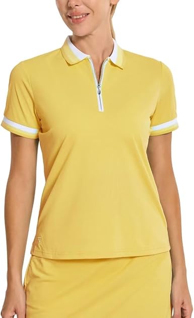 M MAELREG Womens Golf Shirt Short Sleeve 1/4 Zip Pique Performance Quick Dry Tennis Casual Collared Polo Shirts for Women