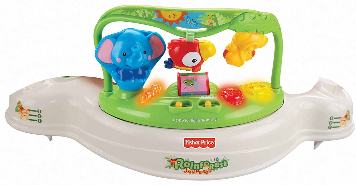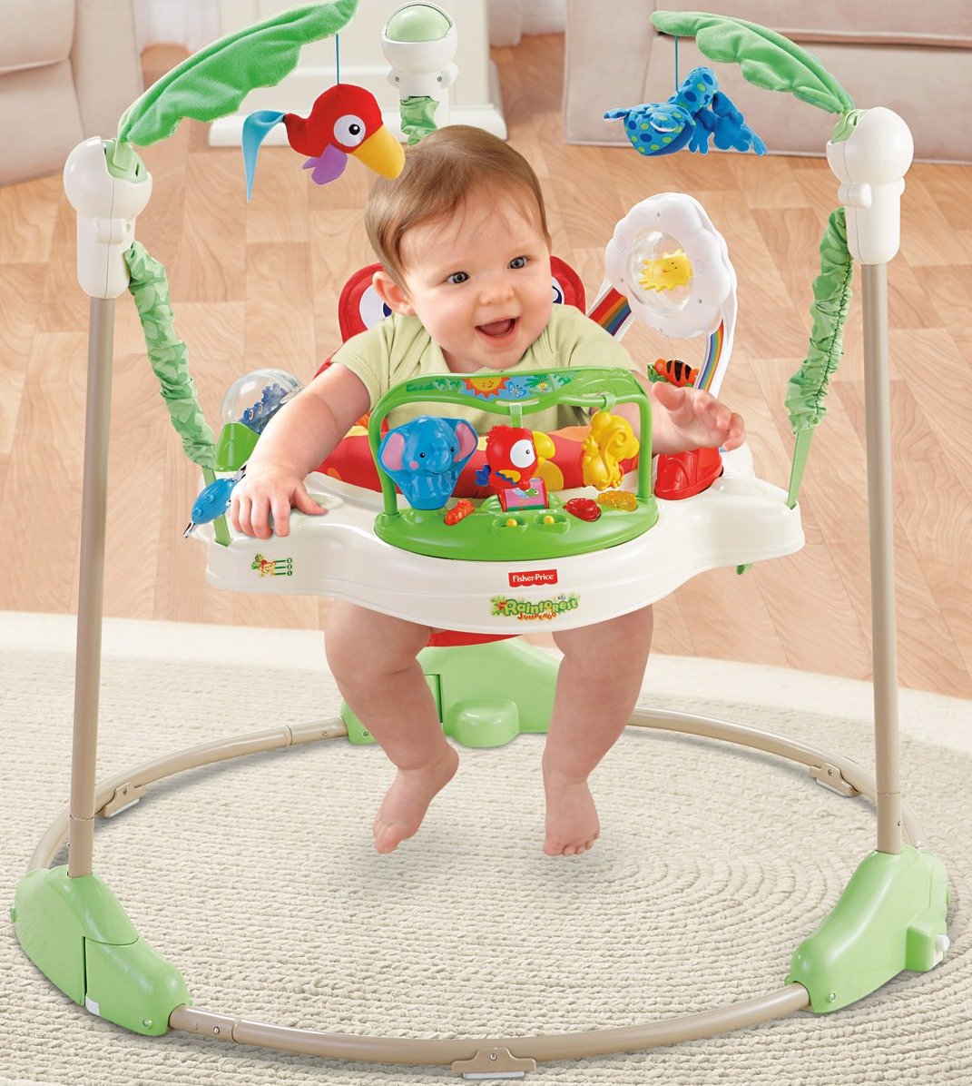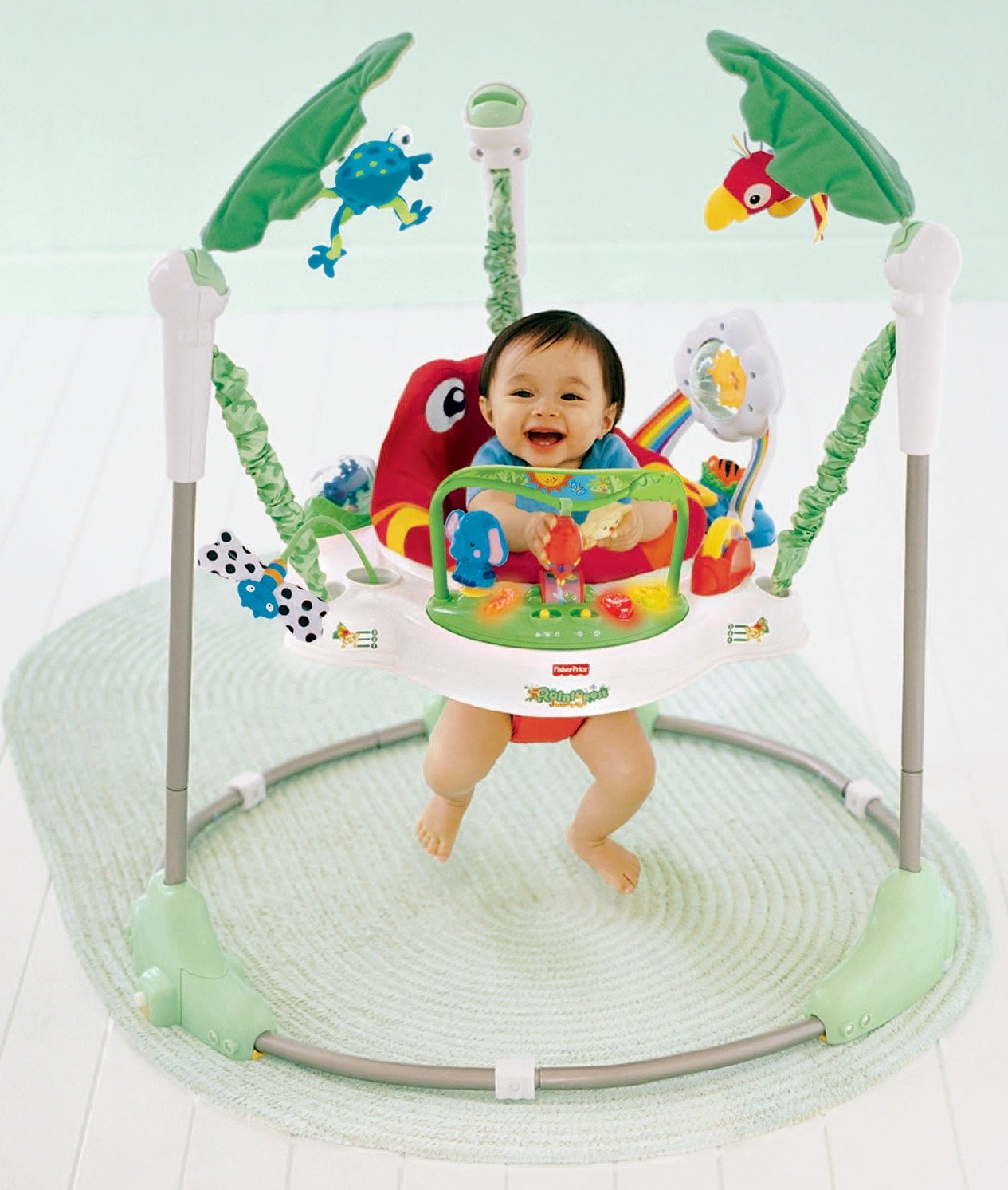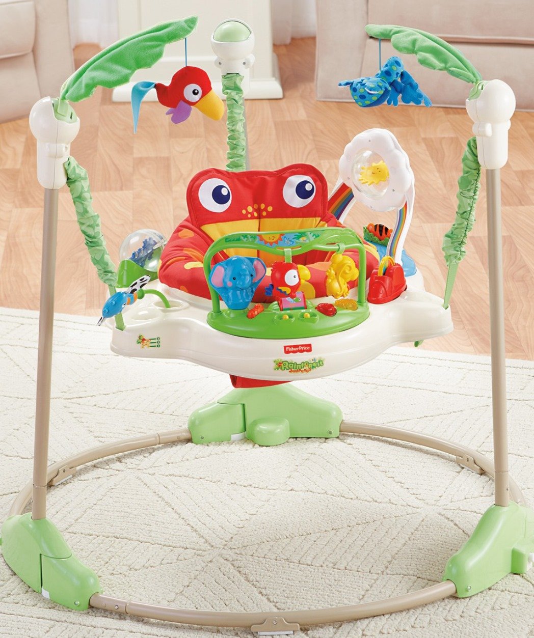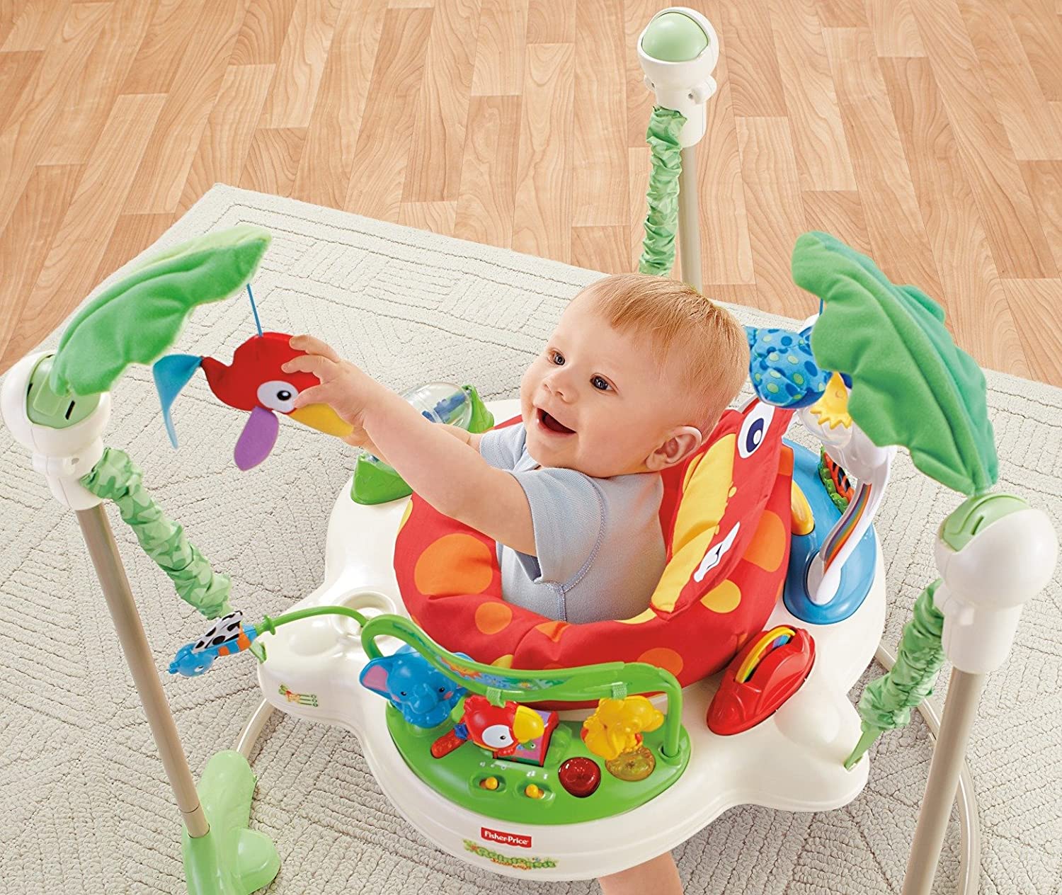 Your baby will love exploring all the hands-on fun of this Fisher-Price Animal Wonders Jumperoo activity center. The rotating seat gives little ones 360-degree access to toys, activities, and animal pals, including a roller ball, bead bar, teether, mirror, and so much more. As your tiny explorer discovers all the fun, their every jump is rewarded with playful music, lights, and sounds. Max. weight 25 lb/ 11,3 kg. Use only with a child who can hold their head up unassisted and who is not able to walk or climb out of the product.
