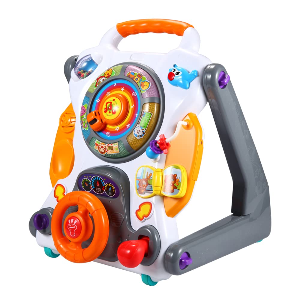 • ✅ PLAY AS ENTERTAINING TABLE--Features Driving Simulation, Engine Switch, Airplane, Turning Page, Lever, Small mobile phone, Small Beads, Rotated Rattle , baby can learn scenes and animals, stimulate driving will develop Baby’s motor skills