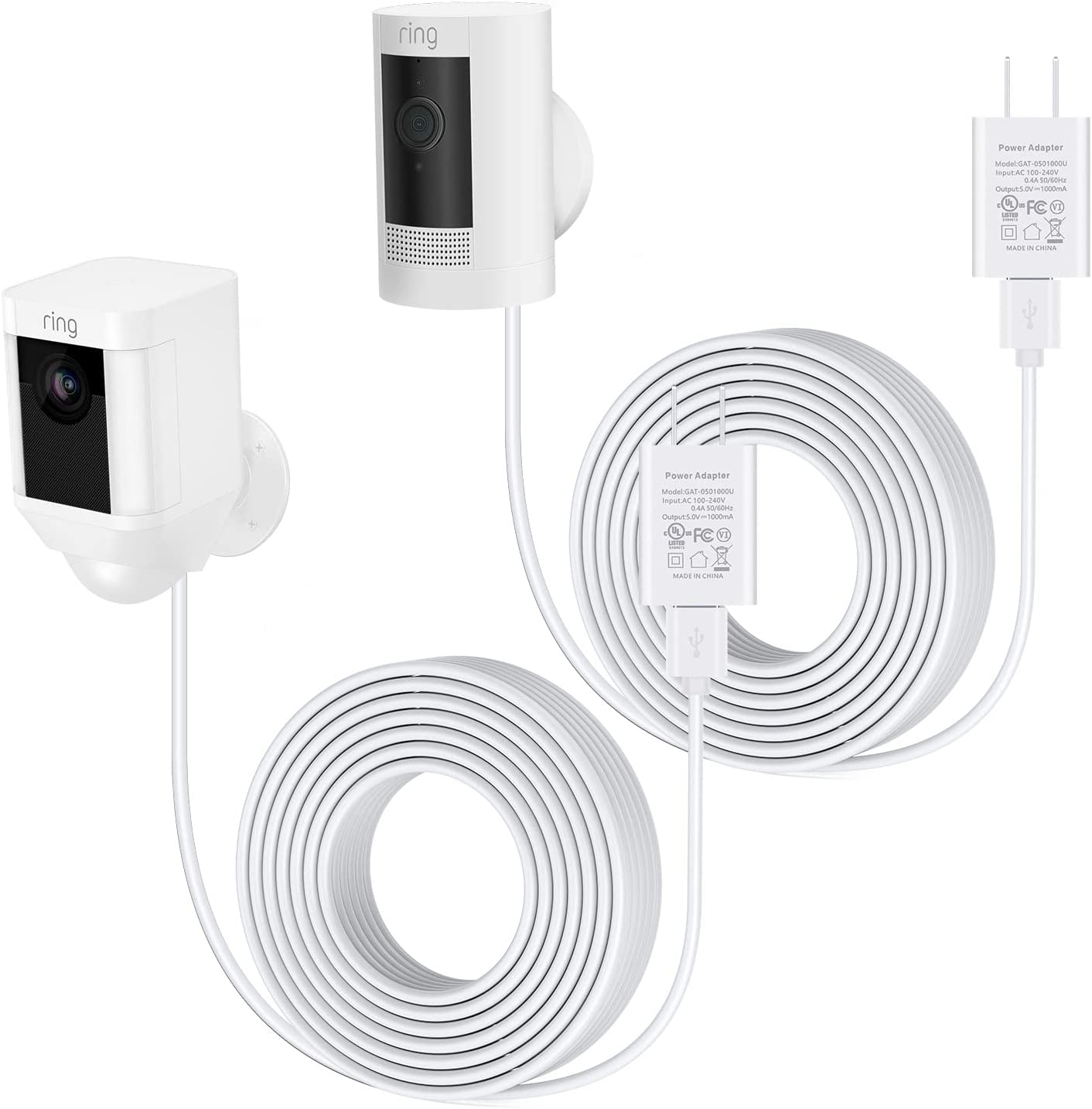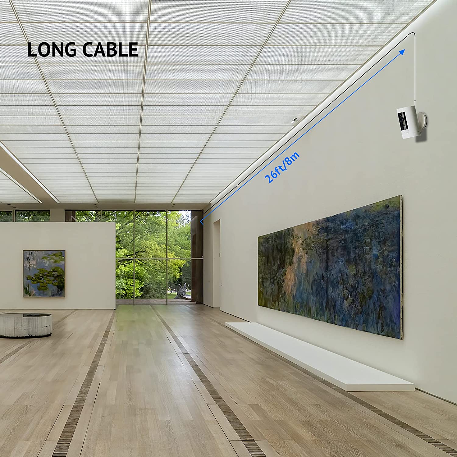 Ayotu 26ft/8m Charging Cable for Stick Up Cam Battery/Plug-in 3rd Gen/2nd Gen & Spotlight Cam Battery, 5V 1A DC Power Adapter Without Worry Run Out of Power (NOT Include Camera), 2 Pack White