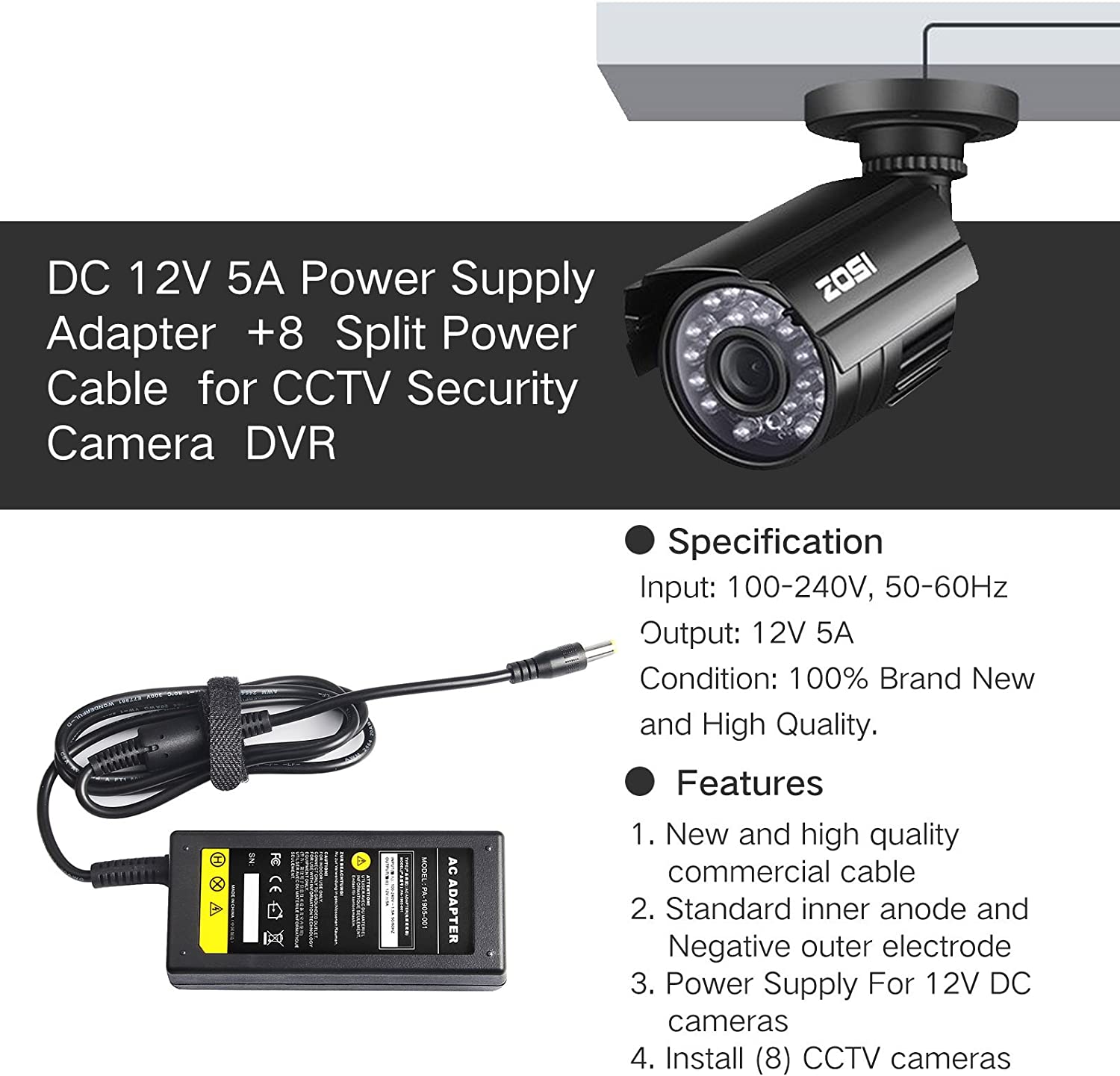 Charger replacement for Zmodo and Most CCTV system Cameras. It also works with RGB LED Strip Lights and many other common electronic components.