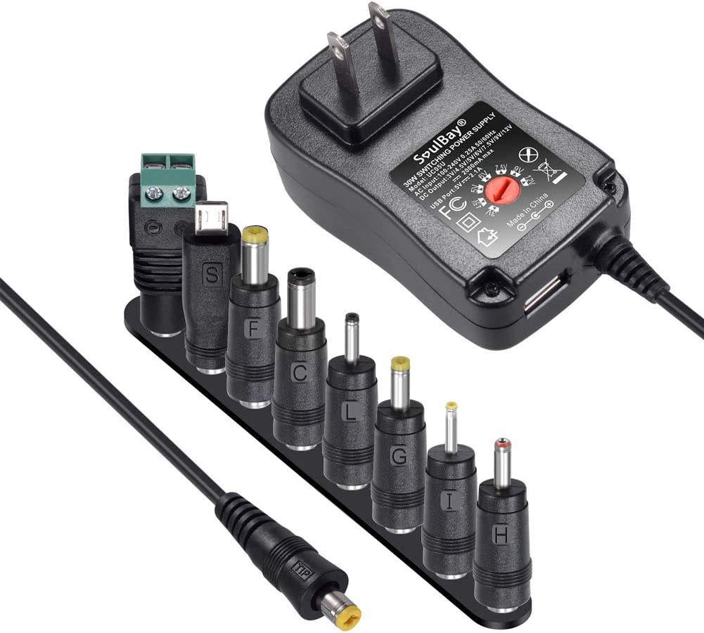 [Upgraded Version] SoulBay 30W Universal AC/DC Adapter Switching Power Supply with 8 Selectable Adapter Tips, Including Micro USB Plug, for 3V to 12V Household Electronics and LED Strip - 2000mA Max