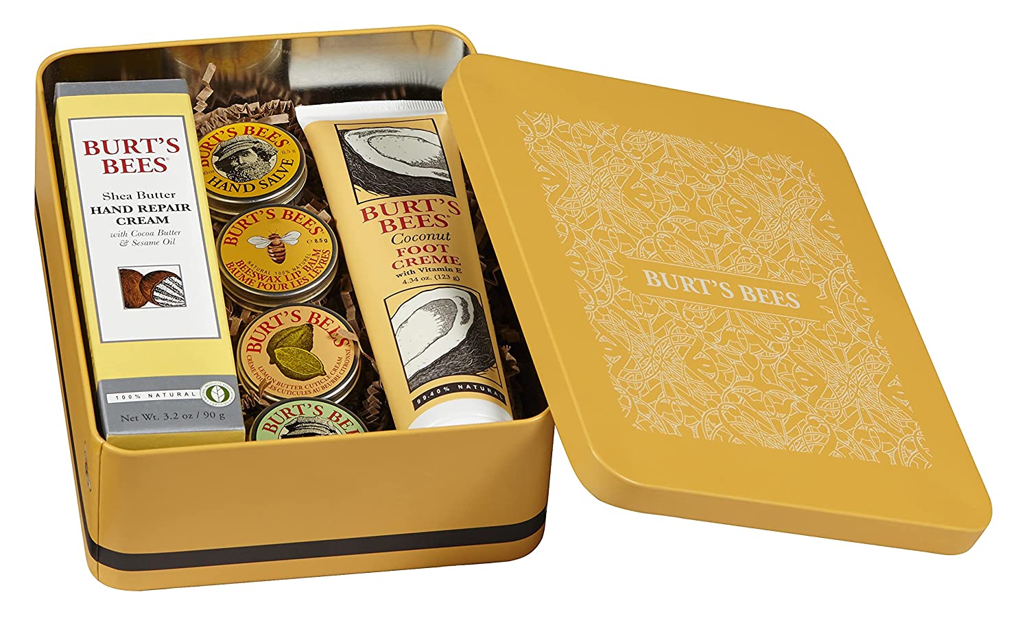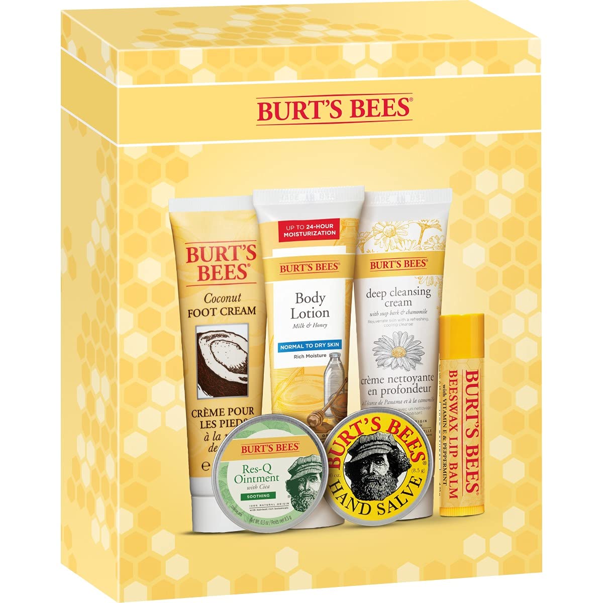 Revitalize and infuse your skin with moisture with Burt’s Bees Classic Gift Set. This 6 piece Classics set includes Lemon Butter Cuticle Cream to nourish and hydrate nails and cuticles; Coconut Foot Cream to pamper feet; Beeswax Lip Balm to replenish dry lips; Classic Hand Salve and Shea Butter Hand Repair Cream to nurture and moisturize dry hands; and to nourish and moisturize your dehydrated skin, a tin of Res-Q Ointment. Burt’s Bees Classics are time tested originals made with the finest ingredients from nature. Indulge your skin with these natural products formulated to help retain moisture and keep your skin soft and supple. This Burt’s Bees Classics Gift Set is the perfect birthday or holiday present for anyone on your list. The giftable tin is designed to be gift ready so you can skip the wrapping. Give the gift of nourishment with Burt’s Bees skin care.