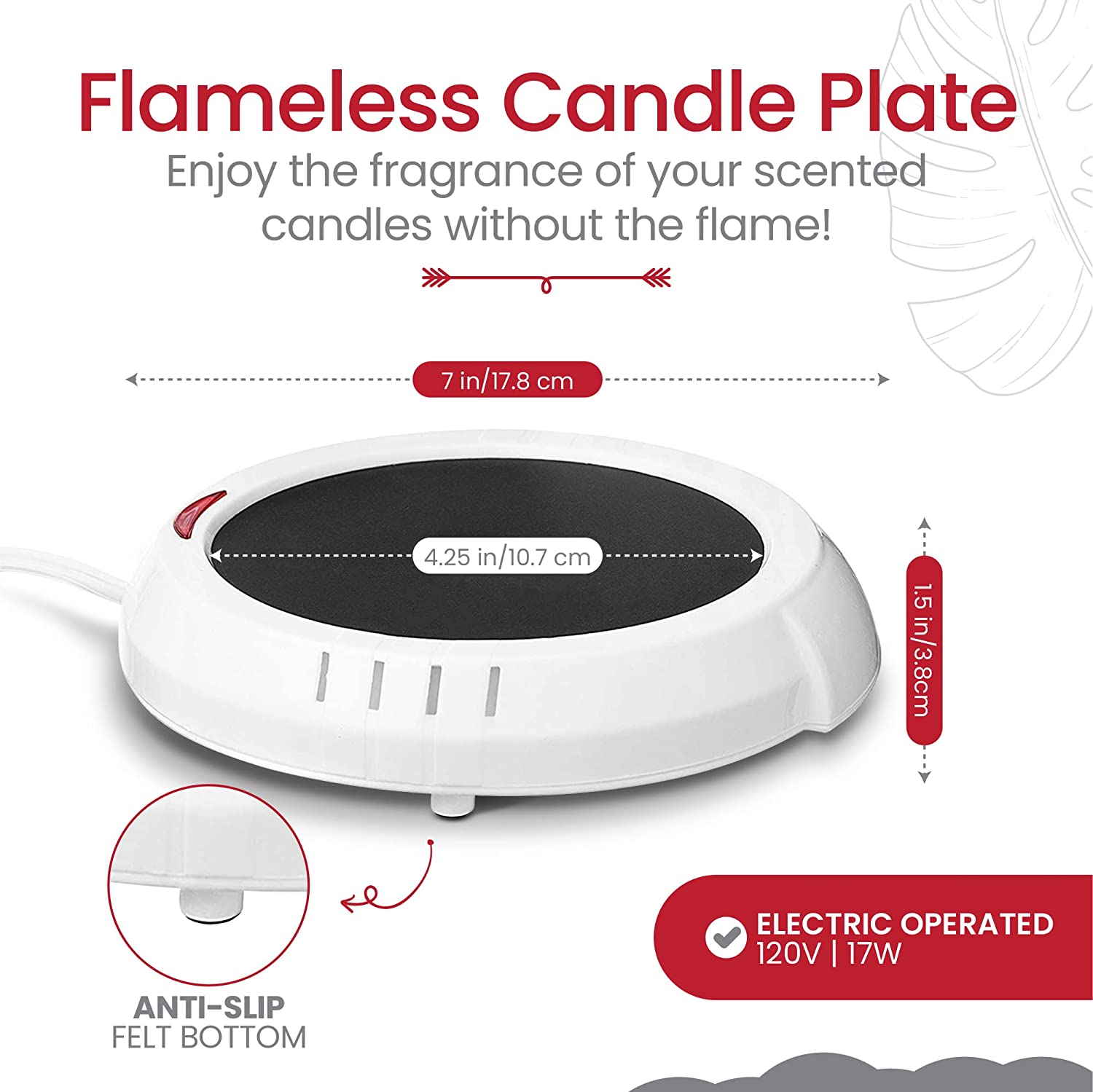 BULK PARADISE Large Jar Warmer Safely Releases Scents Without a Flame-Candle Plate Keeps Coffee, Tea and Soups Warm in Your Home, Office, Desktop and More, 1 Pack, White