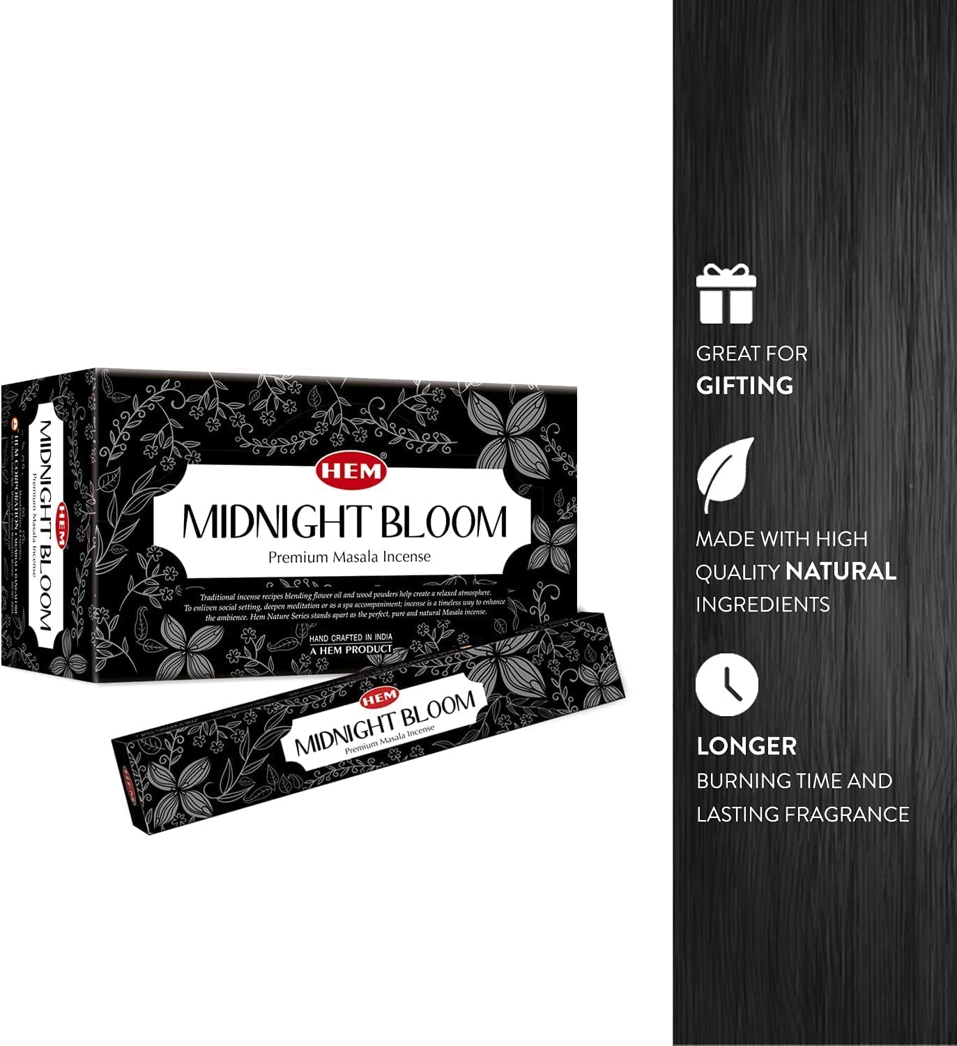 HEM Midnight Bloom Natural Masala Relaxing Incense Sticks - 12 Packets (15g Each)