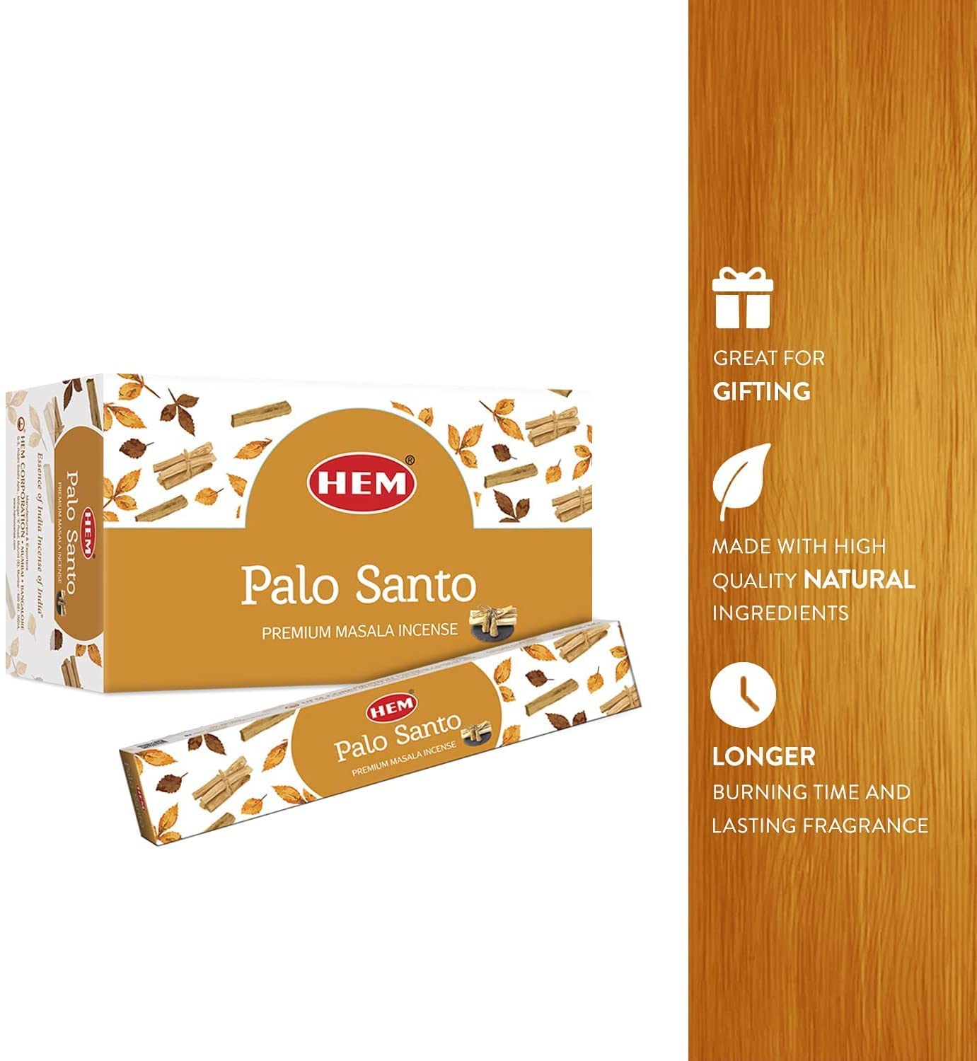 HEM Palo Santo Natural Masala Cleansing Incense Sticks - 12 Packets (15g Each) | Natural Fragrance for Aromatic Environment | Incense for Stress Relief, Relaxation