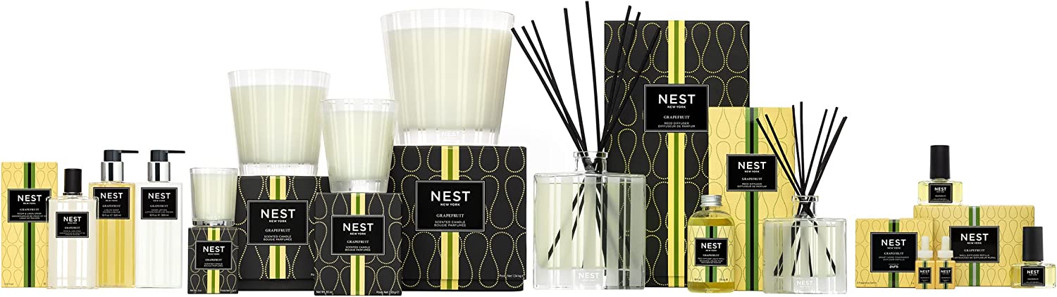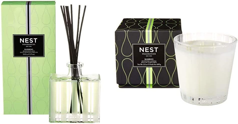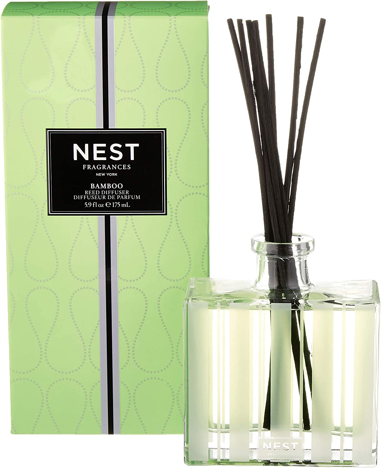 Enjoy exquisite, uninterrupted home fragrance for up to 90 days with the NEST New York Bamboo Reed Diffuser. Expertly crafted in the USA with the highest quality alcohol-free fragrance oils, this reed diffuser is housed in a glass vessel adorned with elegant, frosted stripes that makes a beautiful addition to any room. Flowering bamboo combines with white florals, an abundance of lush green notes, and hints of sparkling citrus in this sophisticated fragrance, which creates an enchanting mood in your home. The glass vessel measures 3.75 inches wide, 4.5 inches high, and 2 inches deep. Eight all-natural rattan reed sticks and 5.9 fluid ounces of oil are included. The intensity and reach of the fragrance can be customized based on the number of reed sticks used. As part of an ongoing commitment to cruelty-free practices, NEST New York has been certified by PETA, a leading organization that certifies brands that operate without animal testing. NEST New York’s fragranced home, perfume, and body care collections transform the everyday by artfully blending notes of the familiar, the exotic, and the unexpected for a fragrance experience like no other. Let NEST New York scent your world.