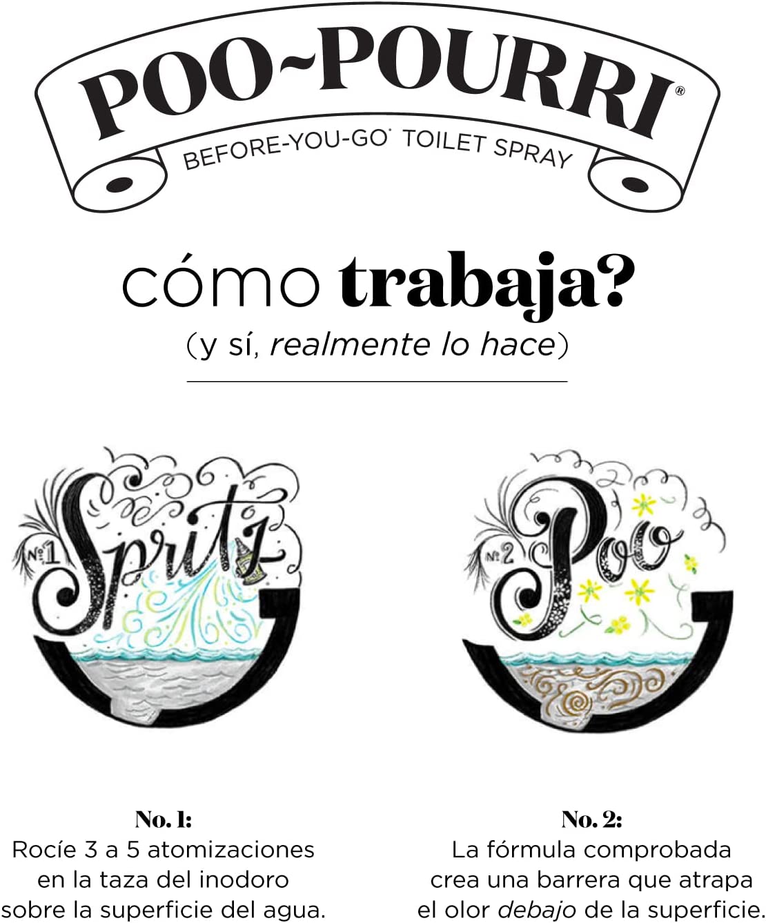 • How It Works: Shake well. Spritz 3-5 sprays into the toilet bowl on the water’s surface. Proceed to do your thing. Poo-Pourri traps bathroom odor under the water’s surface, so it never enters the air.