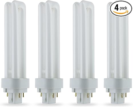(4 Pack) 13 Watt Double Tube, Compact Fluorescent Light Bulb, 2700K Warm White, 4 Pin G24Q-1, Replacement for Sylvania 20682 CF13DD/E/827 - Philips 38325-7 PL-C 13W/827/4P/ALTO and GE 97594