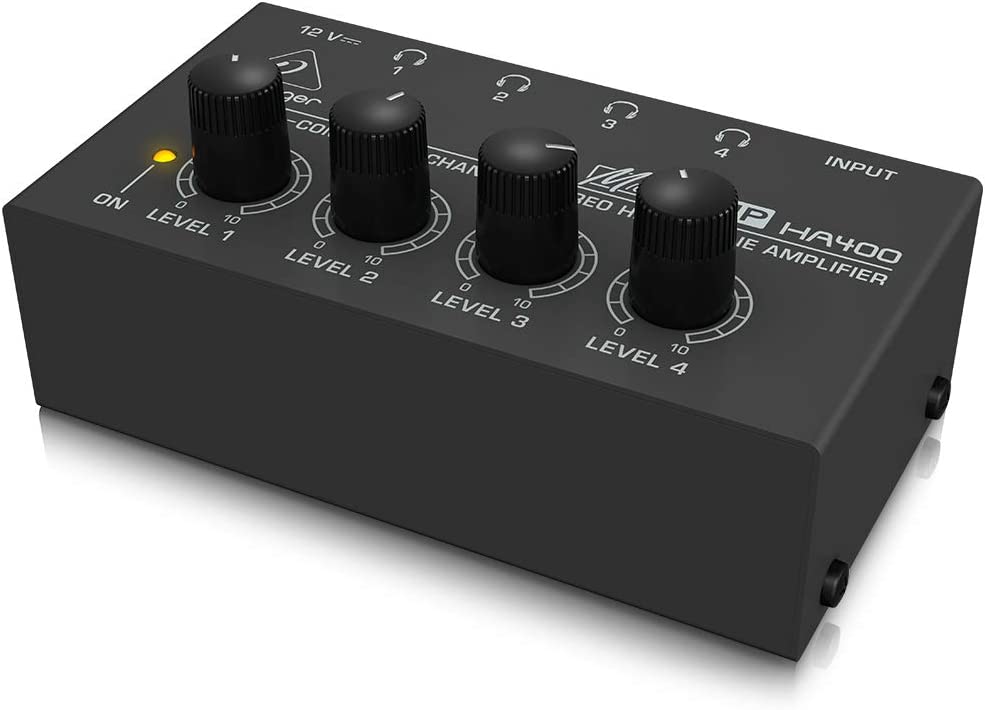 If you're tracking more than one musician at once, or if everyone in a group wants to listen to a playback, you need a monitor distribution system. The compact, flexible HA400 can power up to four pairs of headphones and up to four independent volumes.