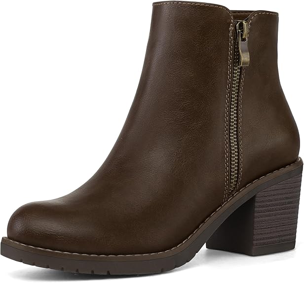 mysoft Women's Ankle Boots Low Chunky Stacked Heel Booties With Side Zipper