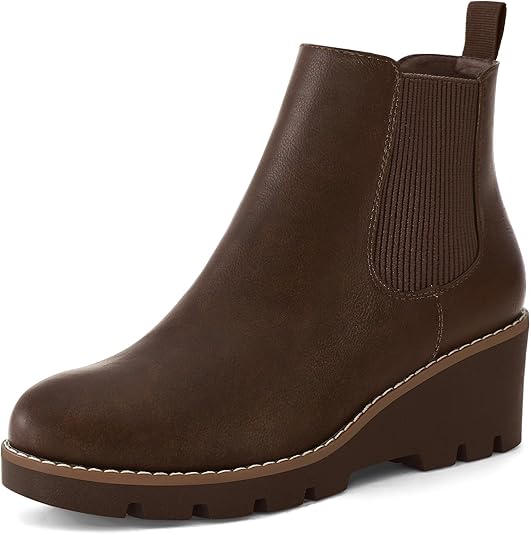 mysoft Women's Chelsea Wedge Booties Platform Lug Sole Elastic Low Wedge Heel Slip On Ankle Boots