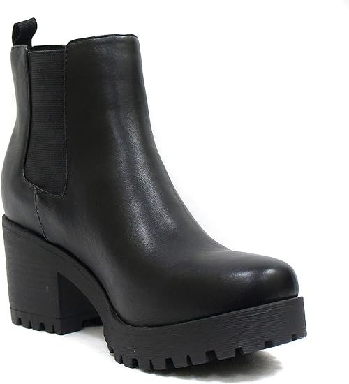 Soda Top Shoes Jaber Ankle Boot w/Lug Sole Elastic Gore and Chunky Heel