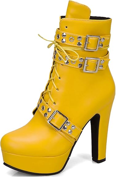 VOKLIN Women's Round Toe Platform High Heel Ankle Boots Fashion Buckle Lace Up Zipper Dressy Short Booties