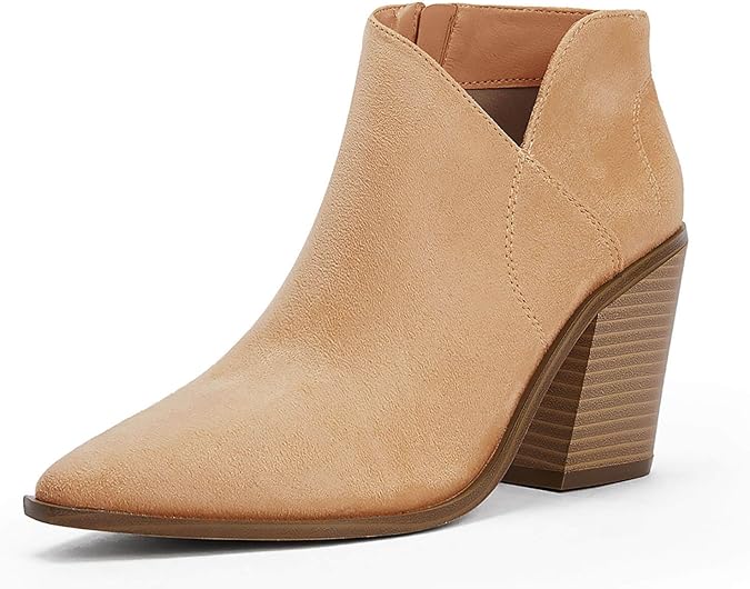 Womens Pointed Toe Ankle Boots Block Stacked Chunky Heel Cutout Side Zipper Fall Booties Shoe