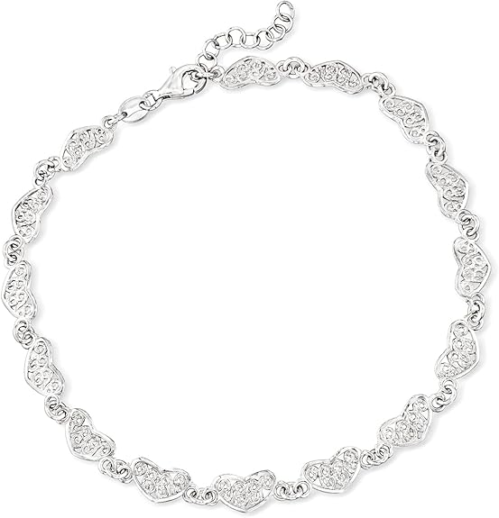 Ross-Simons Italian Sterling Silver Filigree Heart-Link Anklet. 9 inches
