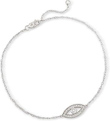 RS Pure by Ross-Simons 0.15 ct. t.w. Diamond Evil Eye Anklet in Sterling Silver. 9 inches