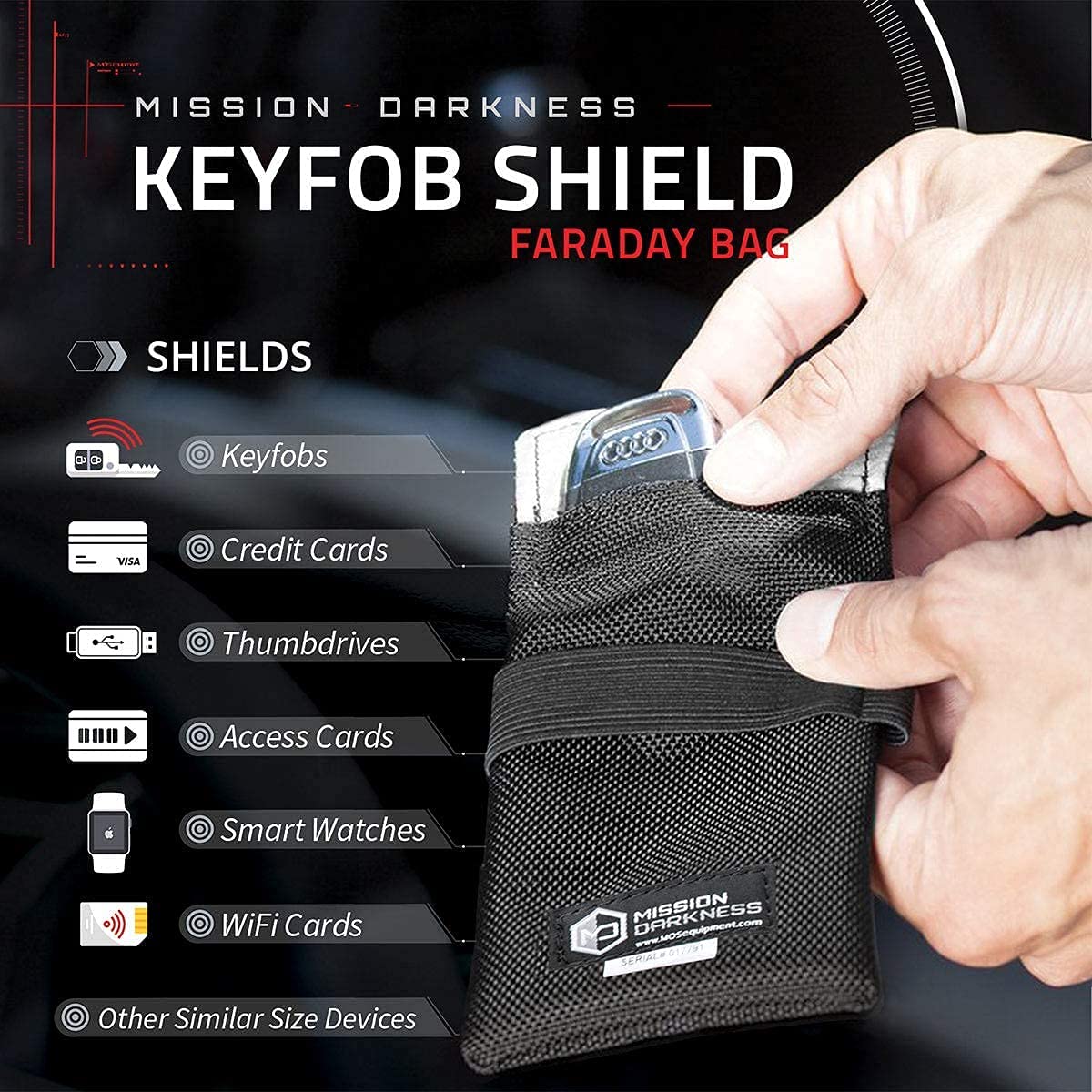 Mission Darkness Faraday Bag for Keyfobs (2-Pack) // RF Shielding Protective Case for Smart Always On Keys Fobs Transmitters Small Electronics Vehicle Security Anti-Hacking Block Signal Relay