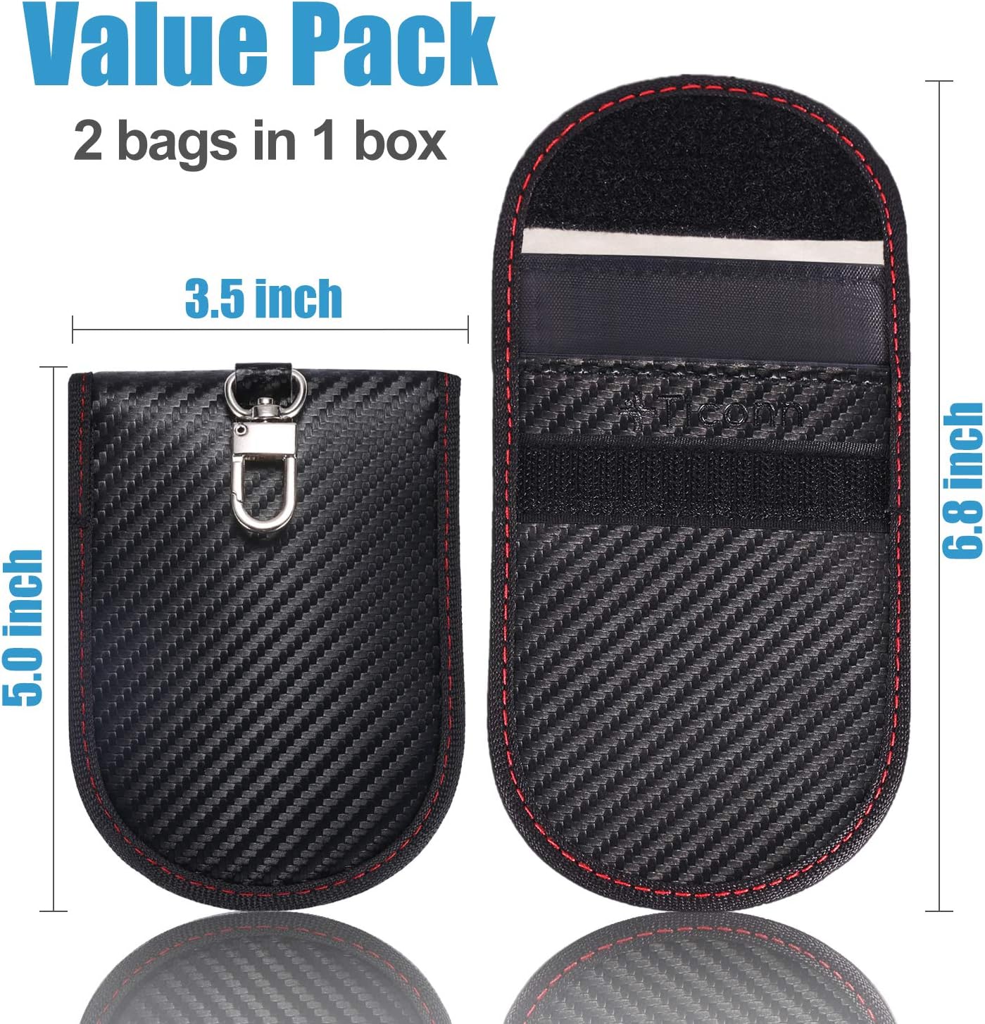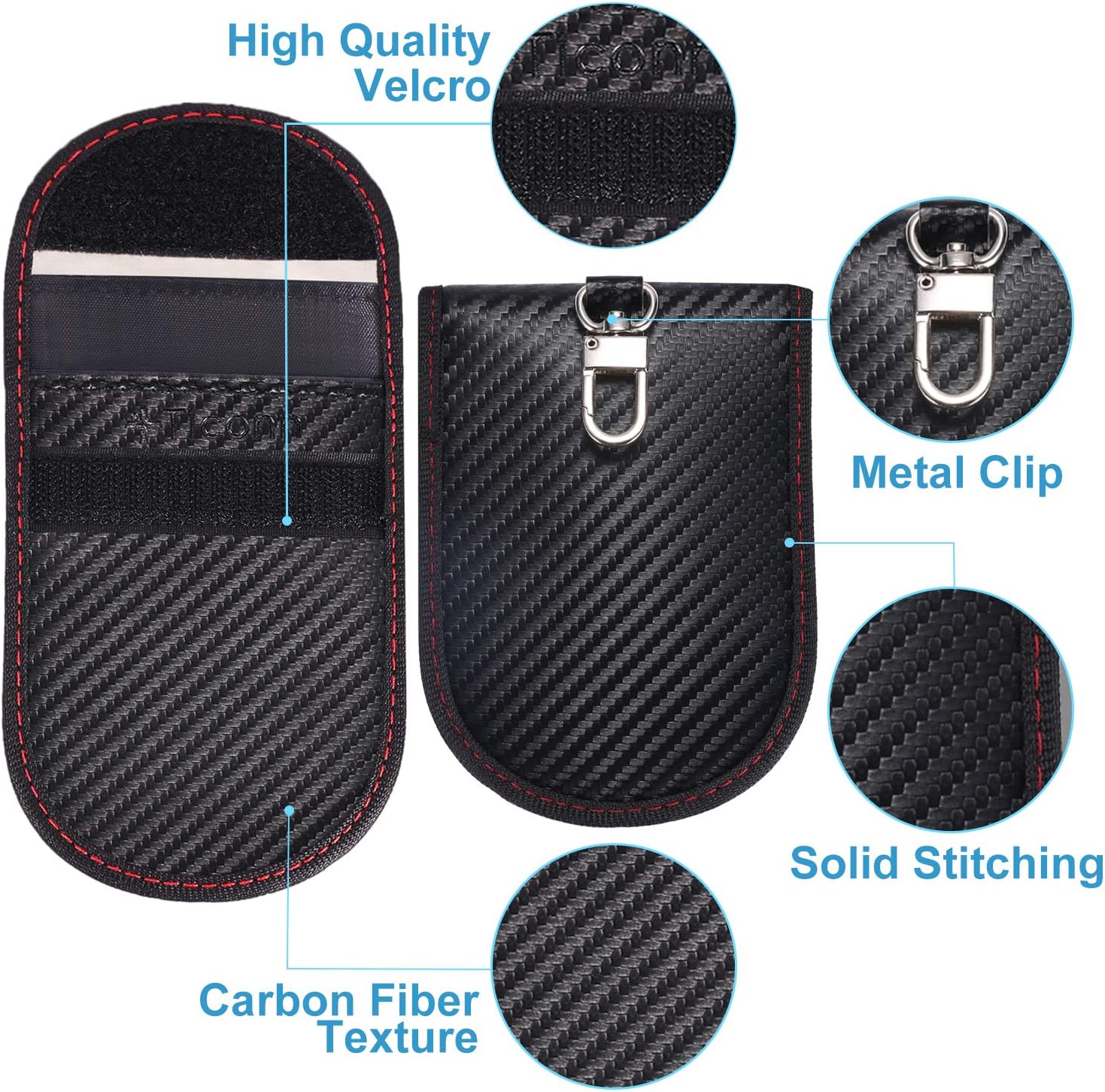 Faraday Bag for Key Fob (2 Pack), TICONN Faraday Cage Protector - Car RFID Signal Blocking, Anti-Theft Pouch, Anti-Hacking Case Blocker (Carbon Fiber Texture)