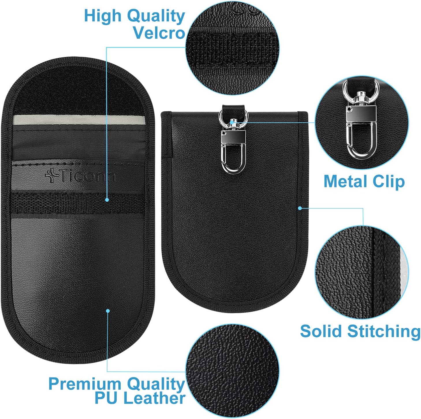 • ✔️【PREMIUM QUALITY】 TICONN faraday bag is constructed with premium carbon fiber textured material and two-layers of shielding materials packed in a gift box. It provides signal blocking functions as well as a luxurious fashionable appurtenance