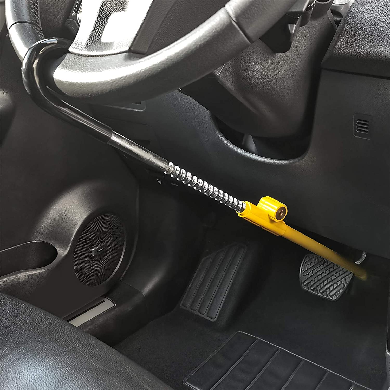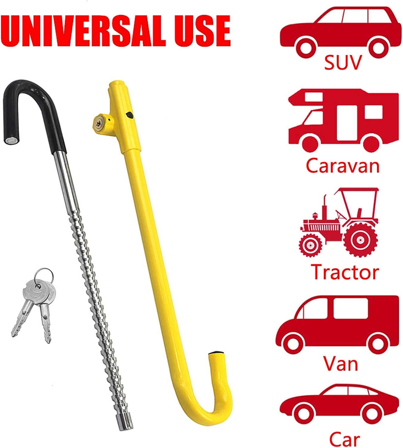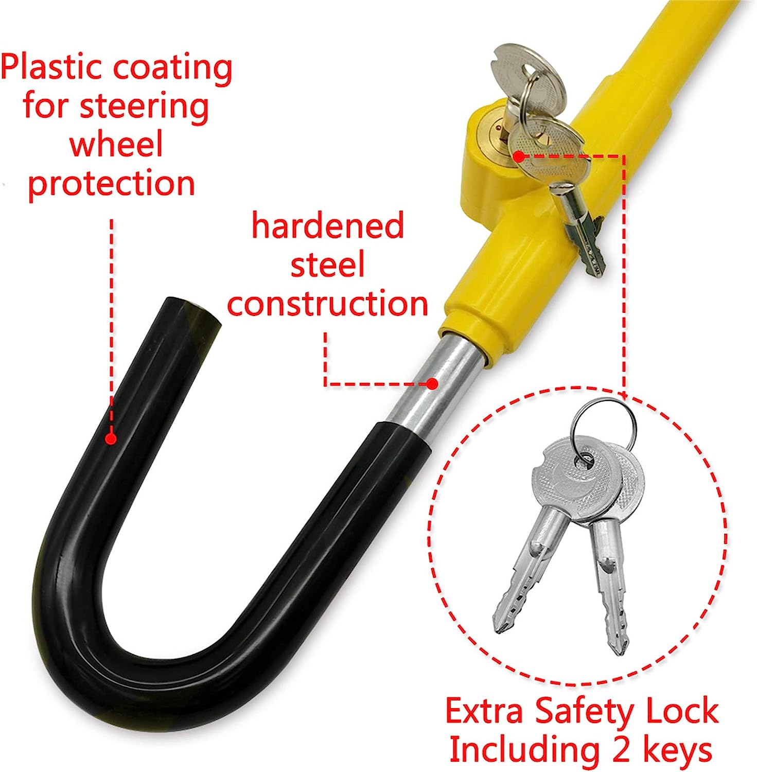 • [Premium Material] The steering wheel lock constructed of solid steel pipe for great security, plastic coating protects your vehicle's steering wheel while in use.
