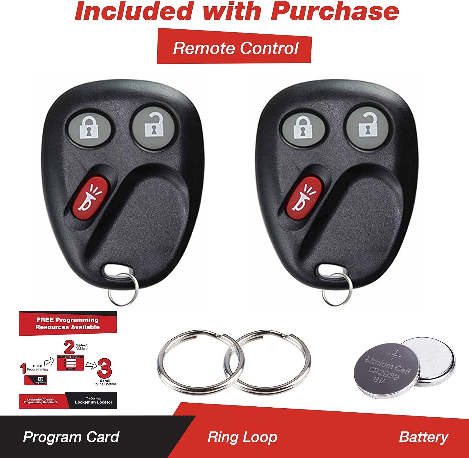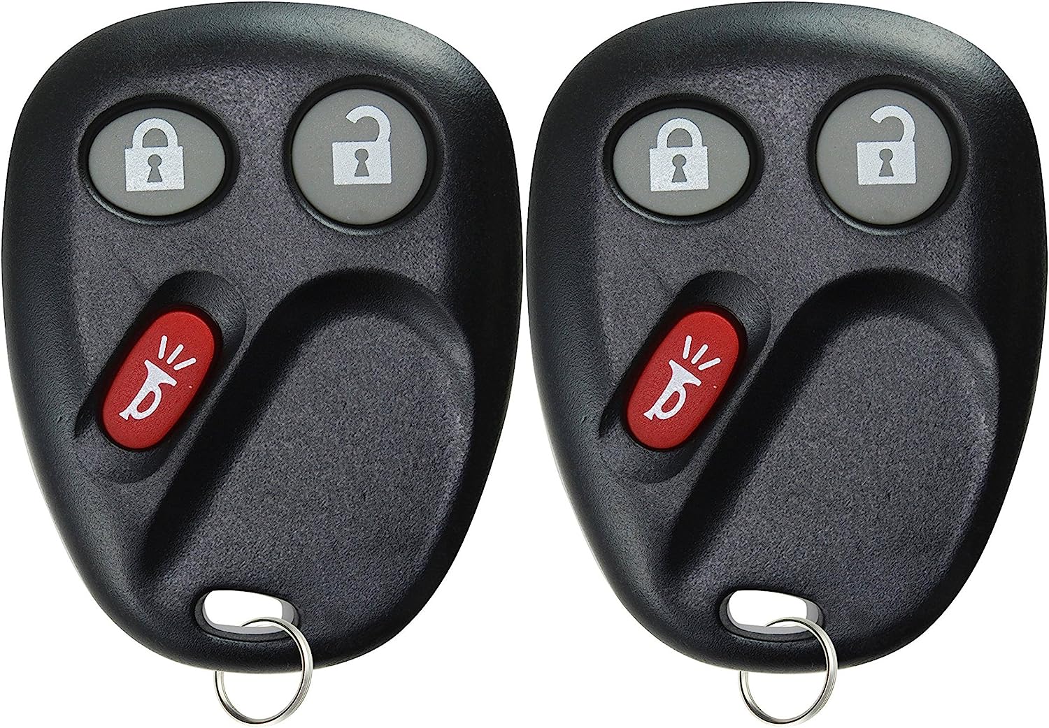 Pair of replacement keyless entry remotes with batteries and electronics installed. This part is Compatible with the following vehicles and part numbers: