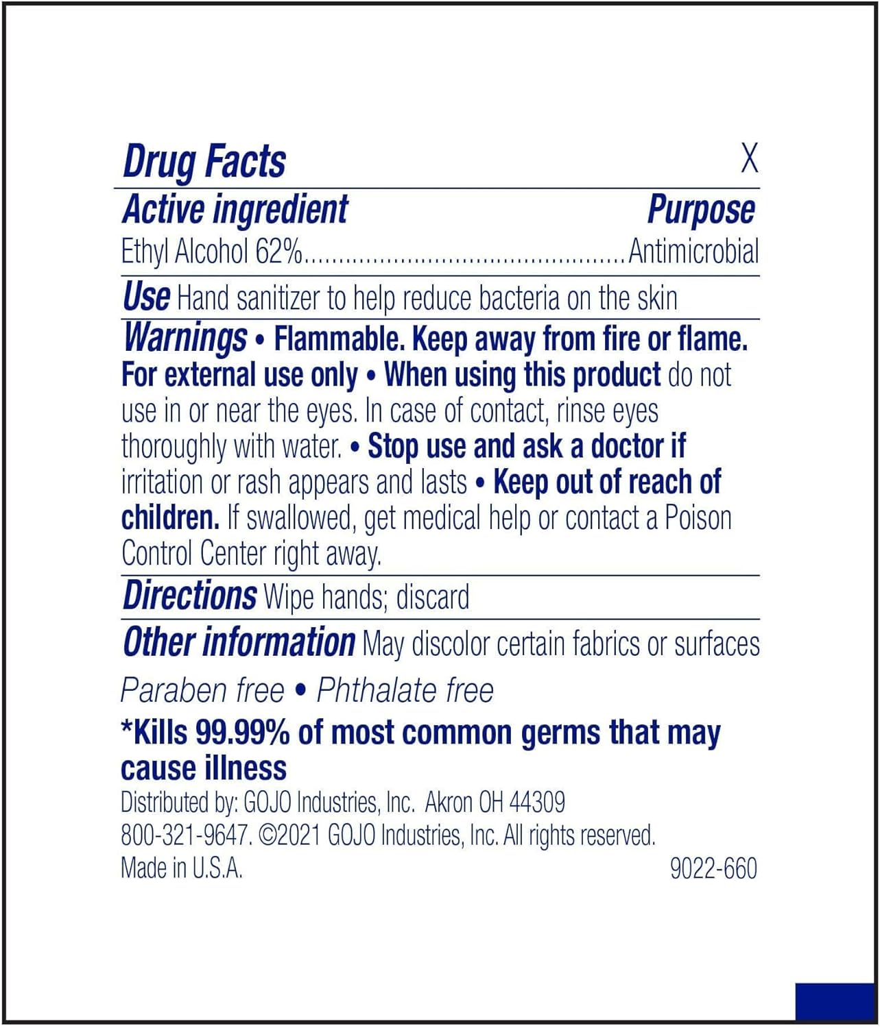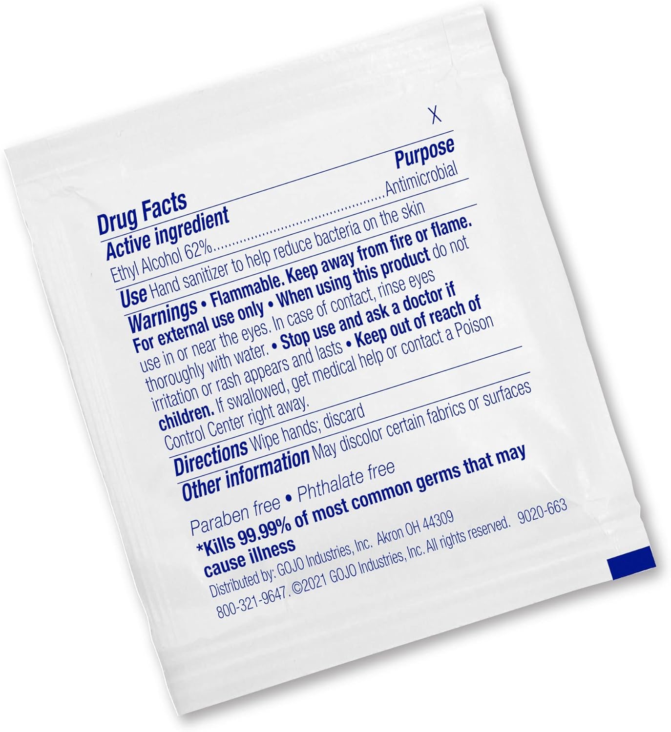 • Case Includes: 300 individually wrapped PURELL Hand Sanitizing Wipes, alcohol formula