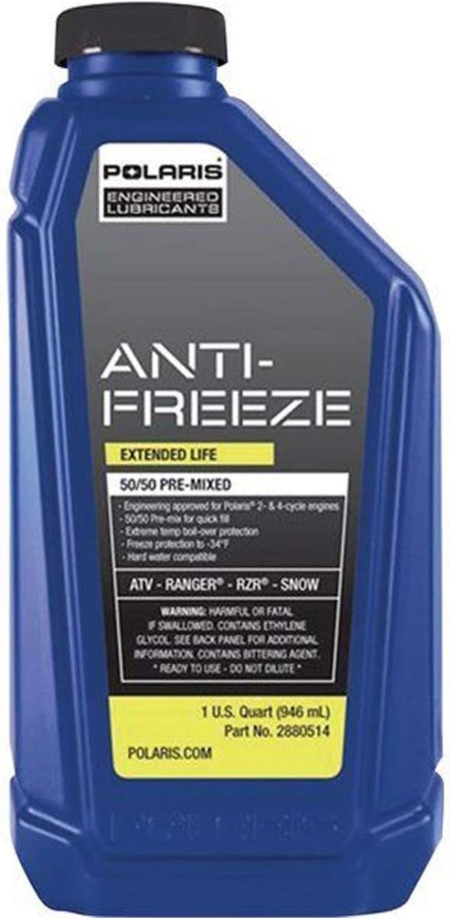 Superior Formula: Polaris Lubricants 50/50 Pre-mixed Extended Life Antifreeze is designed to prevent high temperature boil-over, but still protect engines down to -34° F (-37° C), the specialized formula is for use in all 2- and 4-cycle Polaris snowmobiles and Polaris ORV aluminum cooling systems. Quick Fill: The 50/50 Premix allows for quick fill and is hard water compatible. Applications: Formulated for 2- and 4-cycle Polaris Snowmobiles and ORV aluminum cooling systems, such as ATVs, Rangers, Generals and RZRs. Includes: 1 Quart Polaris 50/50 Premix Extended Life Antifreeze. This Accessory is Designed to Fit the Following: 2019 Indy 600 SP 129in, 2019 Indy 600 SP 129in, 2019 Pro RMK 600 155in, 2019 RMK 600 144in, 2019 Rush 600 Pro S, 2019 Rush 600 XCR, 2019 SwitchBack 600 Adventure, 2019 Switchback Assault 600 144in, 2019 SwitchBack 600 Pro S, 2019 SwitchBack 600 SP 144in, 2019 SwitchBack 600 XCR, 2019 Voyageur 600 144in, 2019 Indy 800 XC 129in, 2019 Pro RMK 800 155in, 2019 Pro RMK 800 155 3in, 2019 Pro RMK 800 163in, 2019 Pro RMK 800 163 3in, 2019 Pro RMK 800 174in, 2019 RMK Assault 800 155in, 2019 Rush 800 Pro S, 2019 SKS 800 146in, 2019 SKS 800 155in, 2019 SwitchBack 800 Adventure, 2019 Switchback Assault 800 144in, 2019 SwitchBack 800 Pro S, 2019 Indy 850 XC 129in, 2019 Pro RMK 850 155in, 2019 Pro RMK 850 155 3in, 2019 Pro RMK 850 163in, 2019 Pro RMK 850 163 3in, 2019 Pro RMK 850 174in, 2019 Rush 850 Pro S, 2019 Rush 850 XCR, 2019 SKS 850 146in, 2019 SKS 850 155in, 2019 Switchback Assault 850 144in, 2019 Switchback 850 Pro S, 2019 Switchback 850 XCR, 2019 ACE 500 --, 2019 ACE 570 EPS, 2019 ACE 900 XC Edition, 2019 General 1000 EPS, 2019 General 1000 Deluxe EPS, 2019 General 1000 Premium EPS, 2019 General 1000 Ride Command Edition EPS, 2019 General 1000 EPS Hunter Edition, 2019 General 1000 EPS Limited Edition, 2019 General 4 1000 EPS, 2019 General 4 1000 EPS Ride Command Edition, 2019 Ranger 500 --, 2019 Ranger 570 --, 2019 Ranger 570 EPS