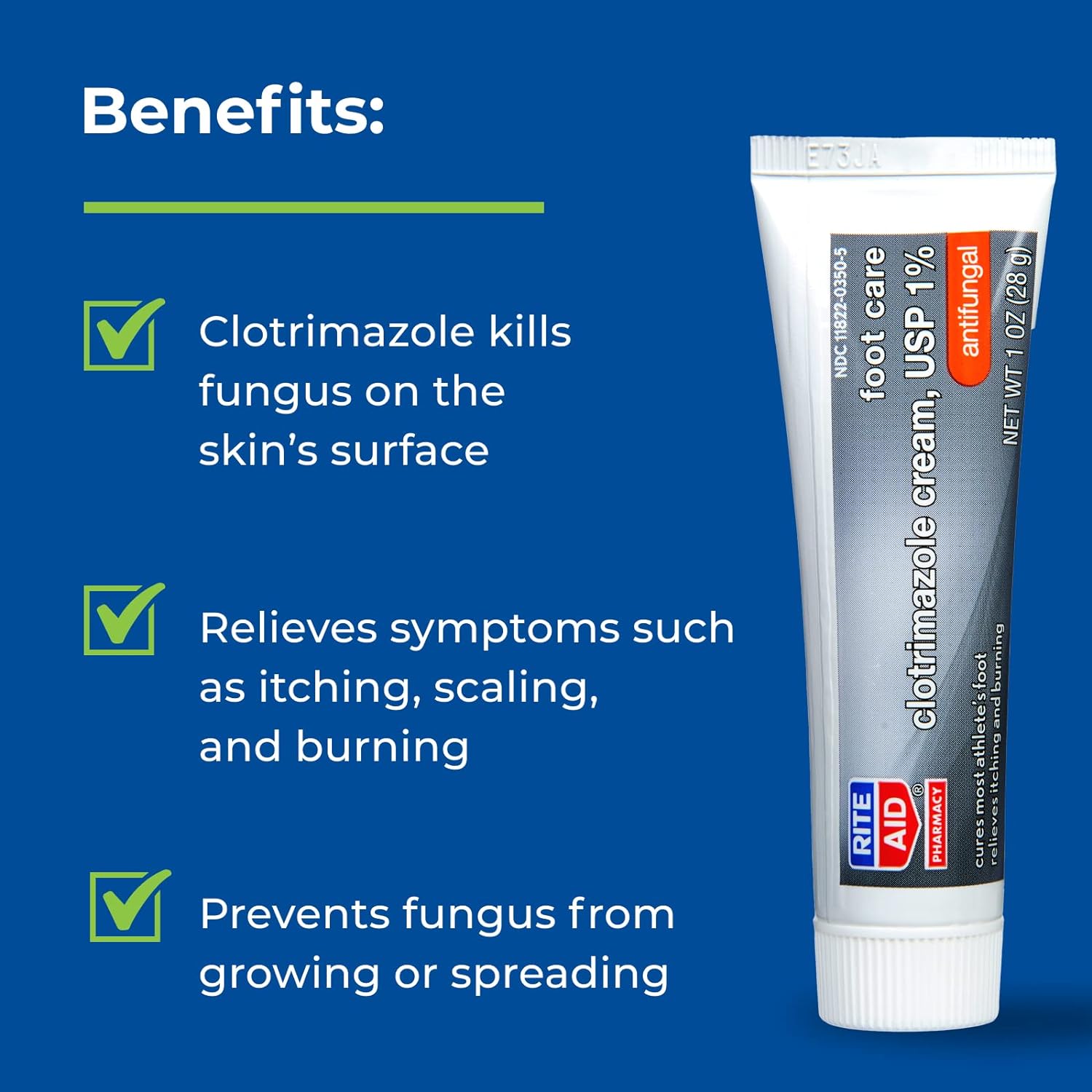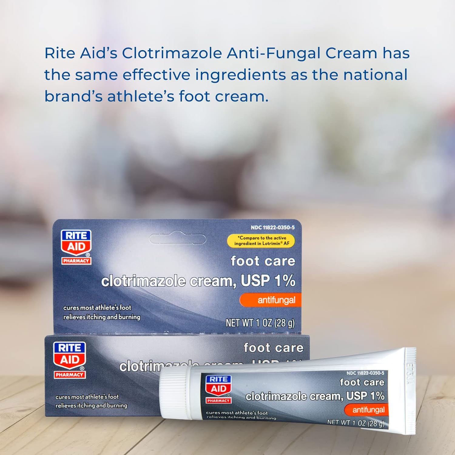 Rite Aid Clotrimazole Anti-fungal Cream, 1% - 1 oz | Treats Athlete's Foot | Jock Itch Cream | Ringworm Cream