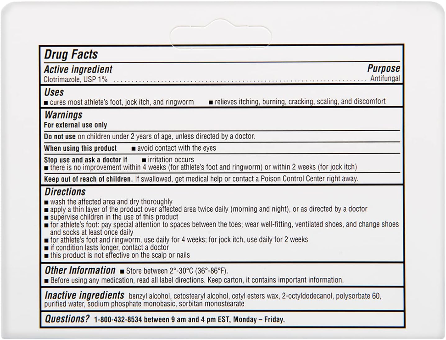 • CURES A VARIETY OF CONDITIONS: Clotrimazole antifungal cream cures most athletes foot, jock itch, and ringworm, along with their symptoms.