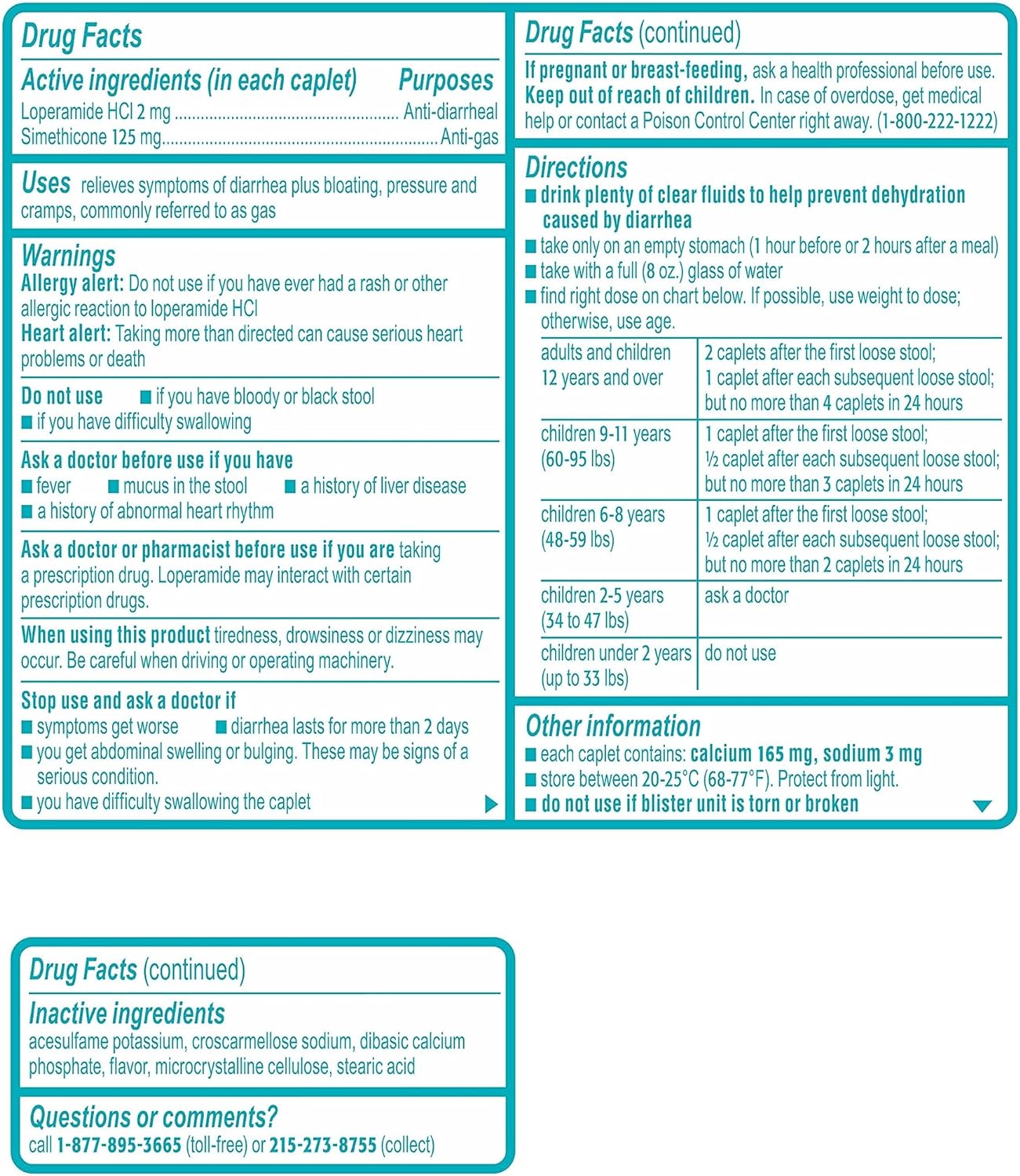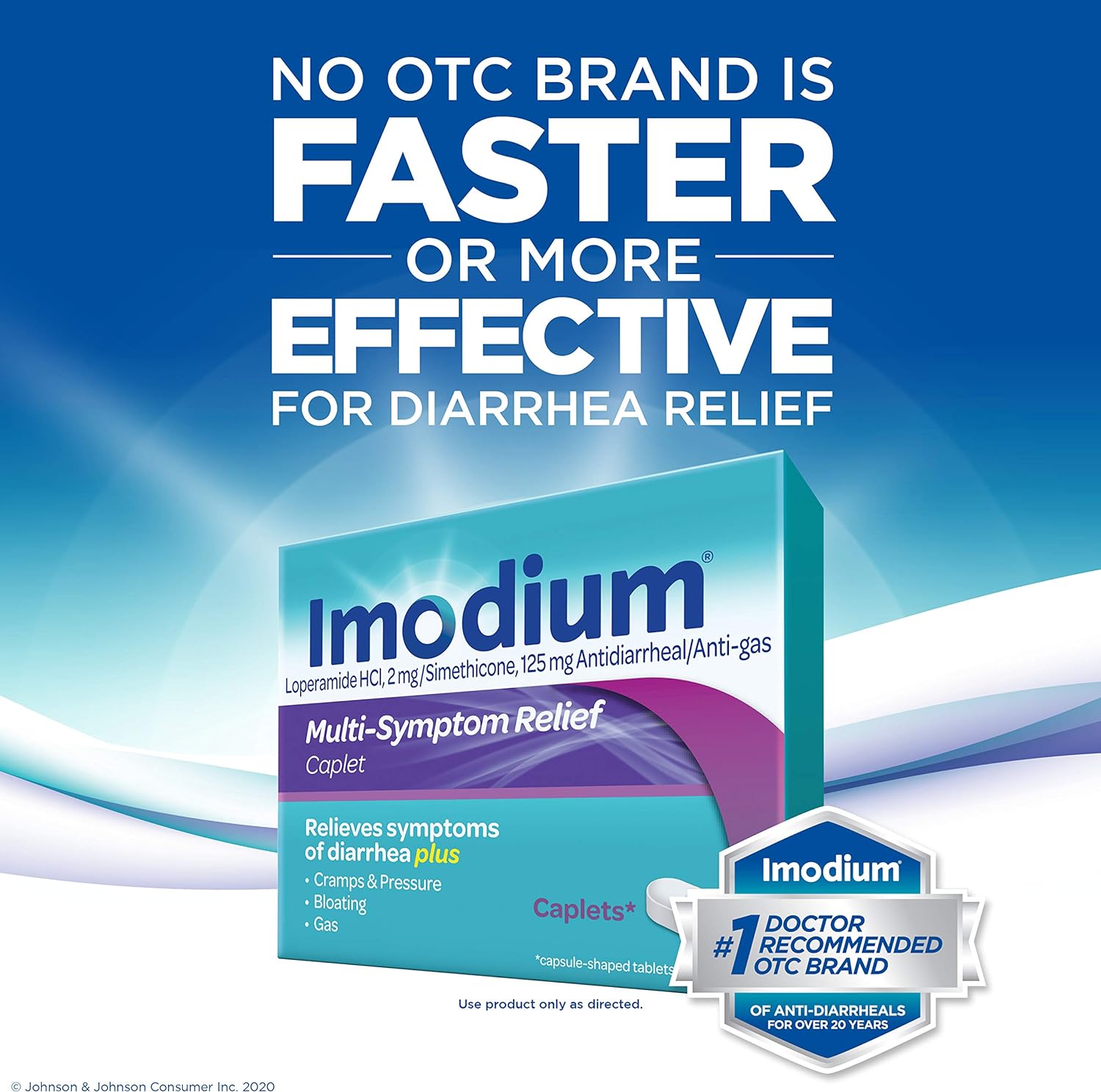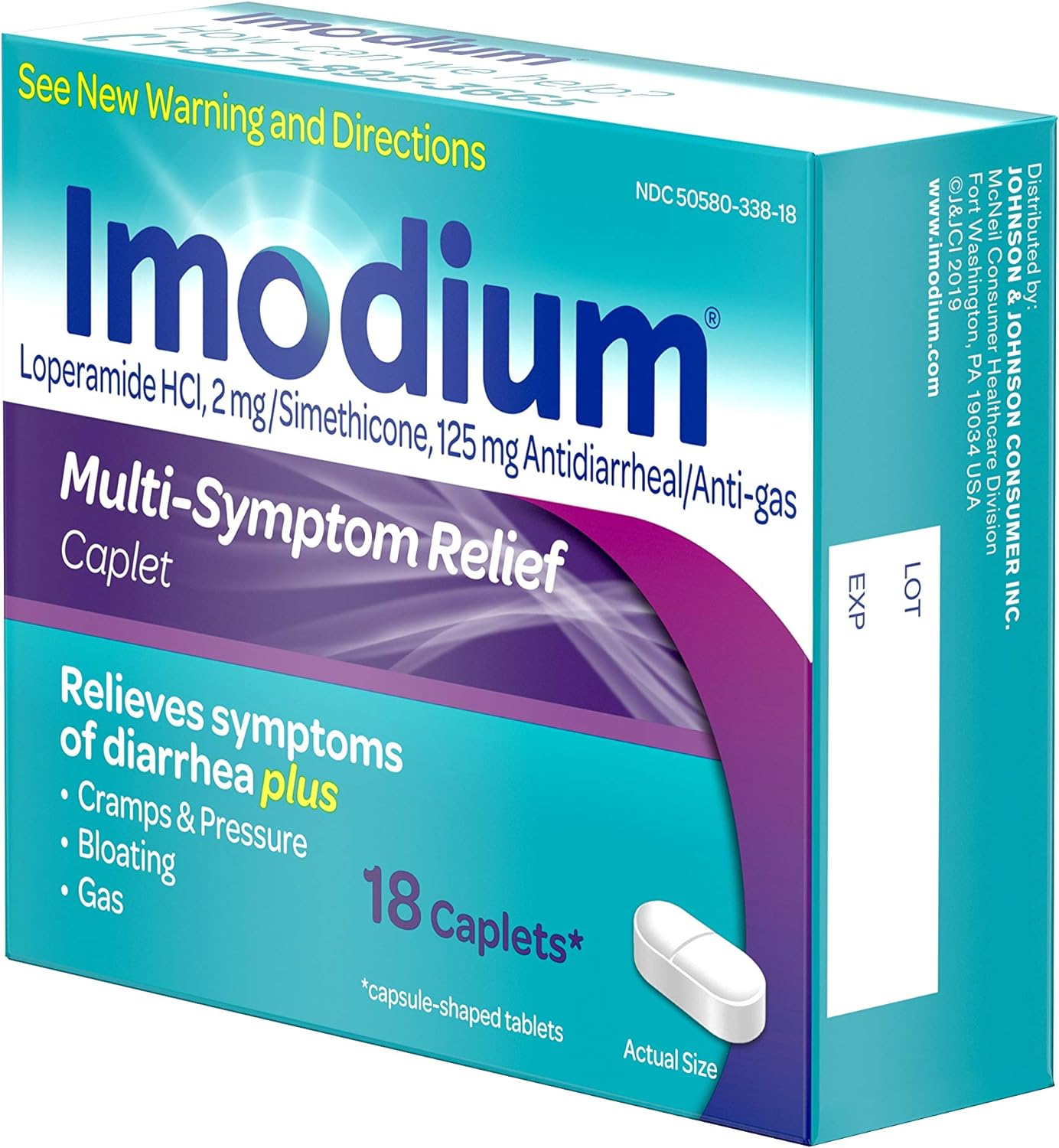 Imodium Multi-Symptom Relief Caplets are the only over-the-counter brand of anti-diarrheal medicine that combines two powerful medicines to relieve symptoms of diarrhea, as well as gas, cramps, pressure and bloating. Each caplet contains 2 milligrams of loperamide hydrochloride to help relieve diarrhea, and 125 milligrams of simethicone to help other associated symptoms such as gas, bloating and cramps. From the #1 doctor-recommended brand of anti-diarrheal products, the proven formula works with your body to slow down your system and helps restore the natural rhythm of your digestive system. Intended for adults and children ages 12 and older, this multi-symptom diarrhea medicine effective relief and is ideal for use anywhere, both at home or on-the-go.