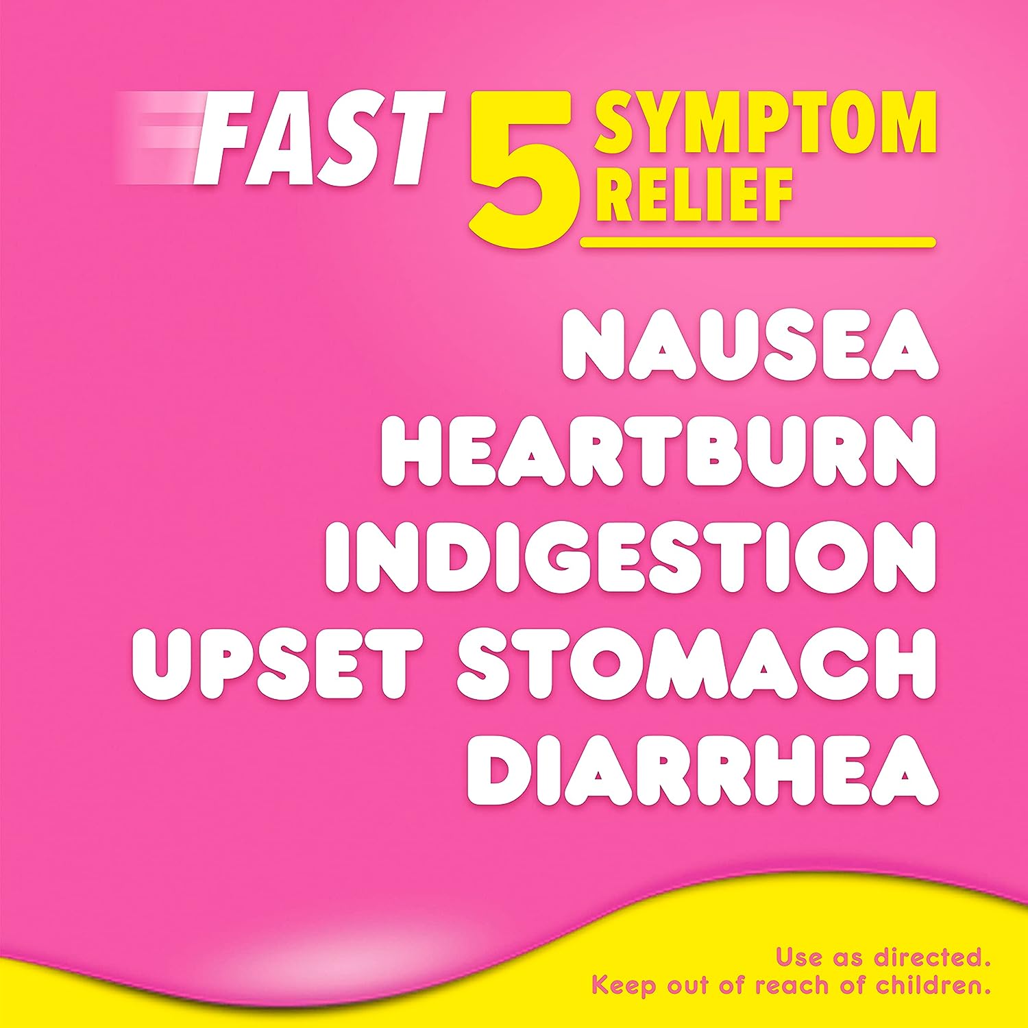 Pepto Bismol Chews provide the same fast and effective upset stomach relief as Pepto Bismol liquid with a soothing mint flavor. Pepto Bismol is an over-the-counter medicine formulated to coat your digestive tract to calm and soothe nausea, heartburn, indigestion, upset stomach, and diarrhea. The convenient chewable form allows you to take Pepto Bismol on-the-go so you can travel worry-free. They are delightful, easy to carry in your pocket, purse or your bag so you can have them on hand when you need them most. Take Pepto Bismol at the first sign of digestive issues so you can get rapid relief. Pepto Bismol provides fast relief from heartburn and indigestion, that uncomfortable feeling after you eat too much. It also provides relief from multiple stomach upsets so you can get back on track fast! May be HSA/ FSA eligible, please confirm with your provider.*Pepto is the #1 Pharmacist recommended brand based on a Pharmacy Times 2022 Survey-upset stomach remedies category.